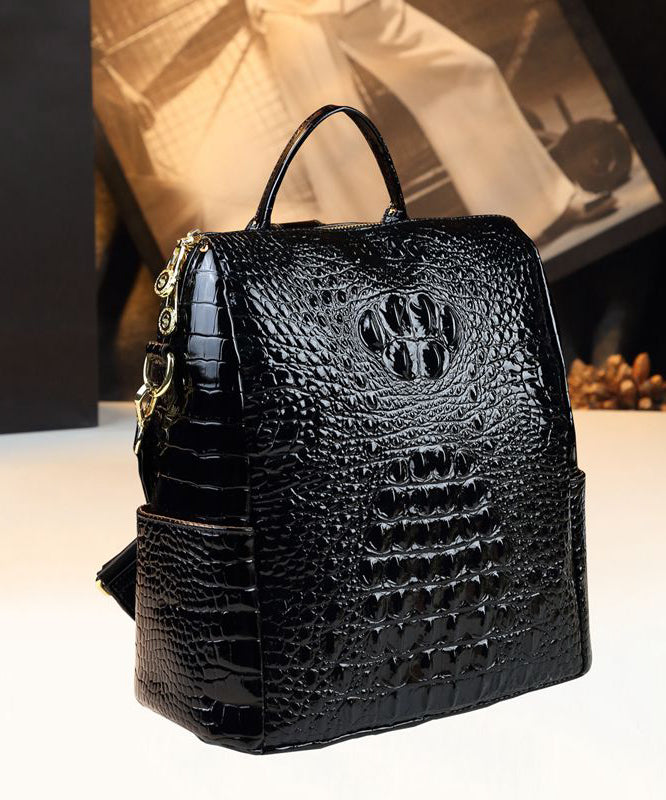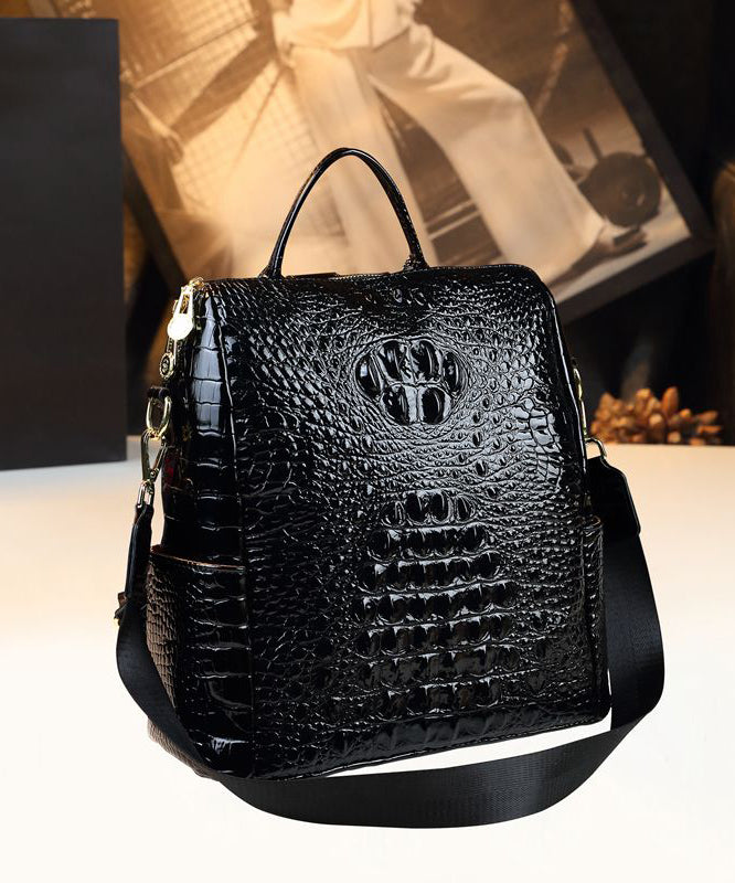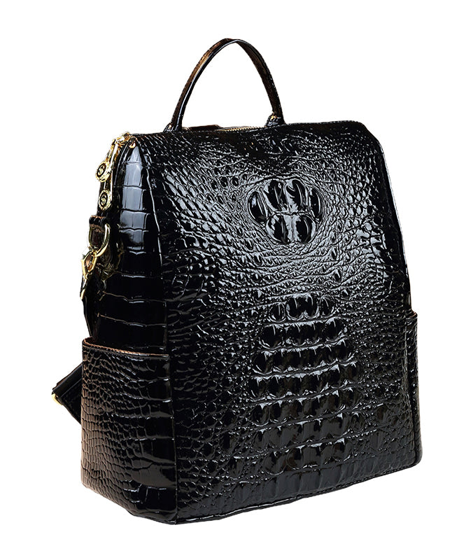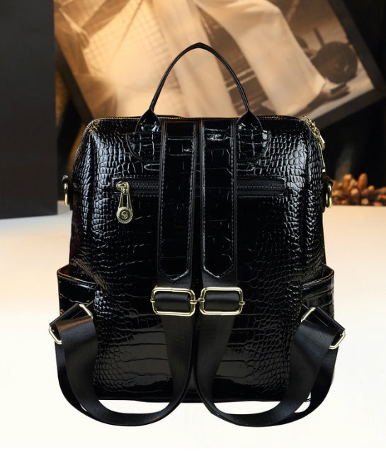 New Black Embossed Large Capacity Calf Leather Backpack Bag
