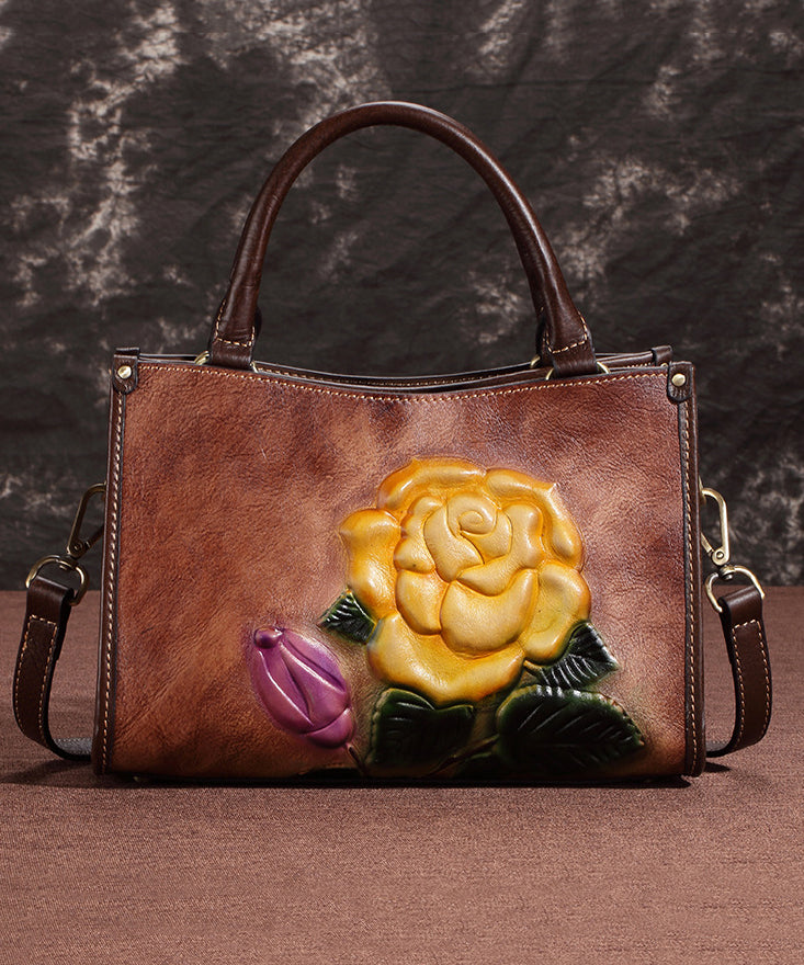New Casual Coffee Embossed Calf Leather Tote Messenger Bag