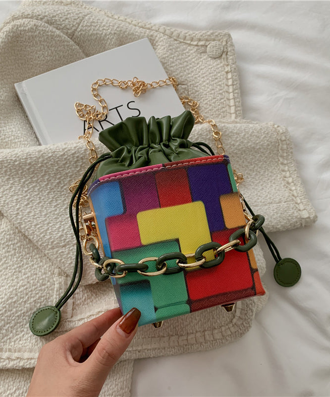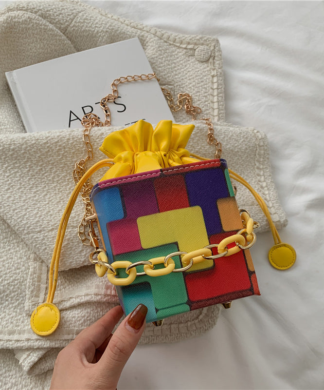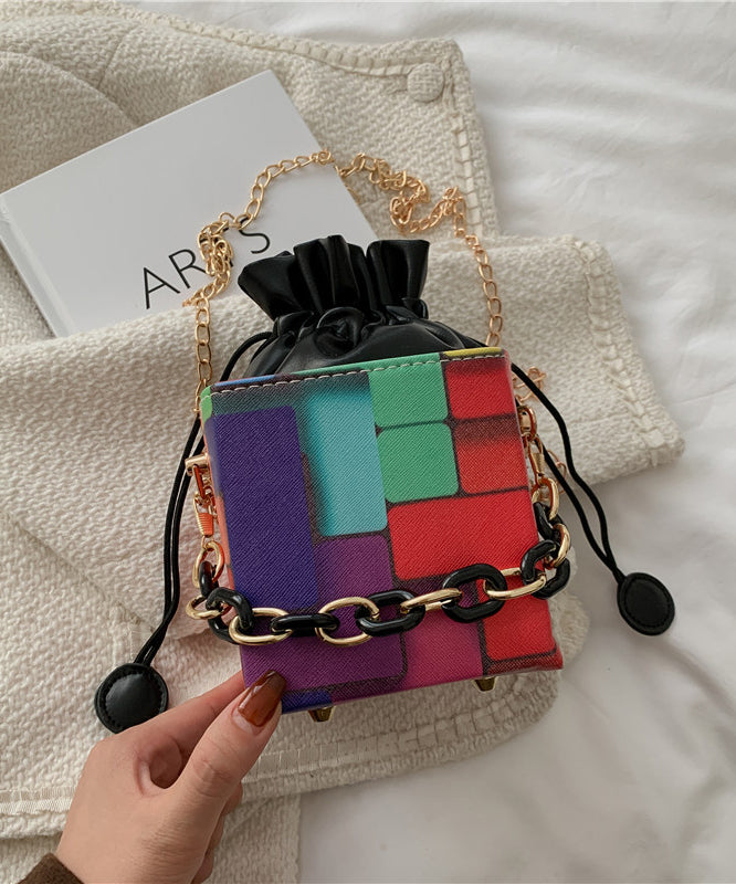 New Fashionable Black Plaid Drawstring Crossbody Bucket Bag