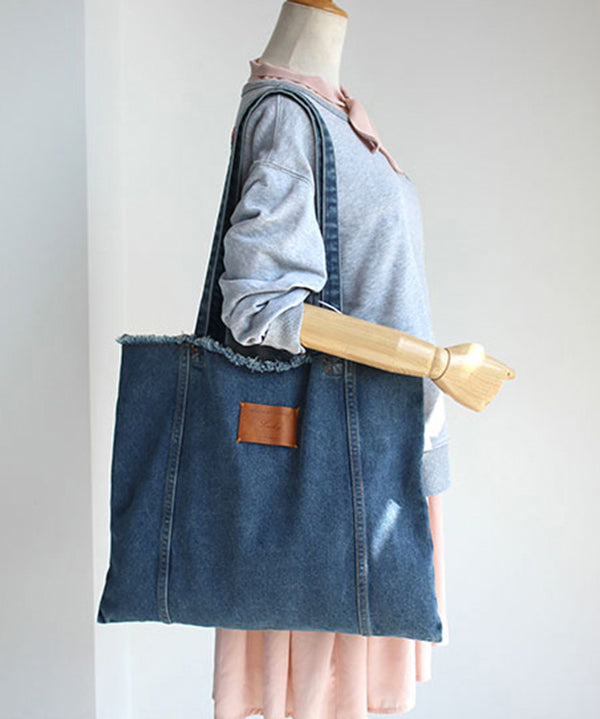 New High-Capacity Torn Edge Denim Shoulder Bag