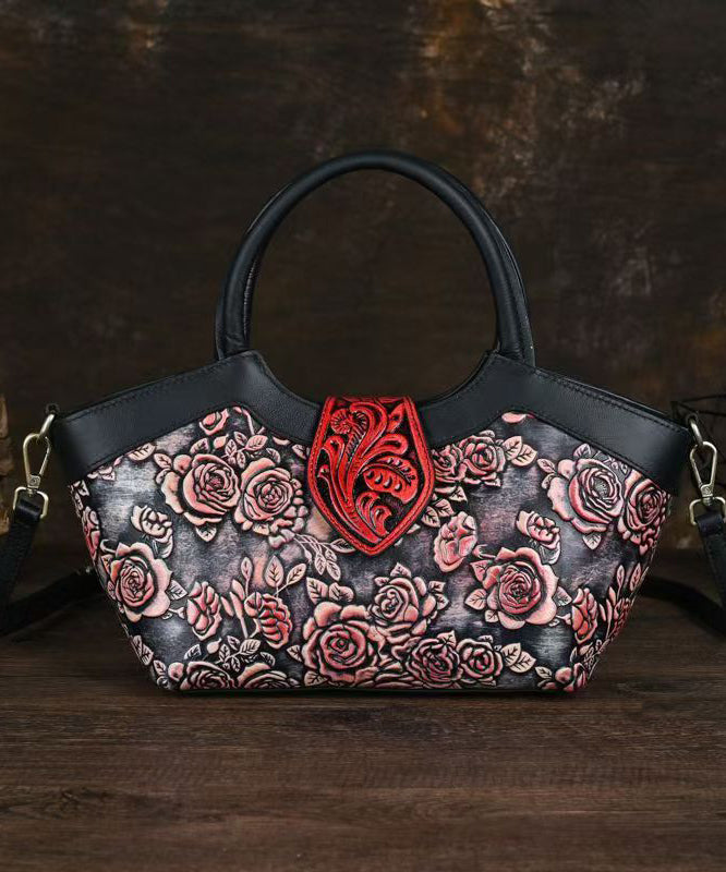 New Retro Red Embossed Calf Leather Tote Handbag