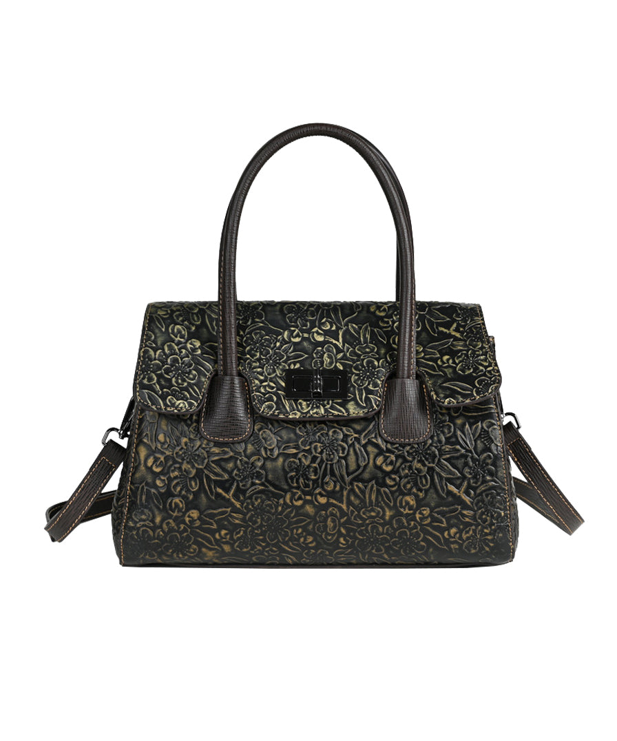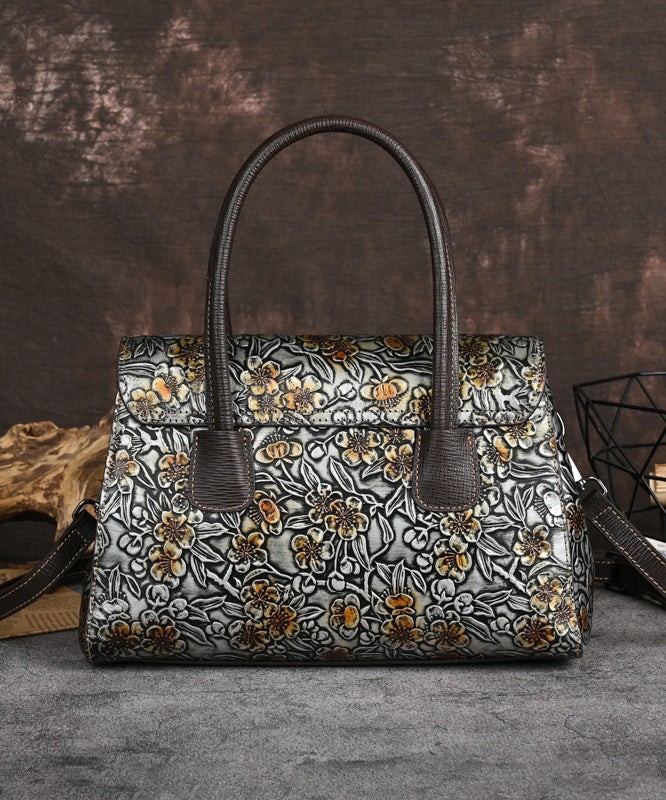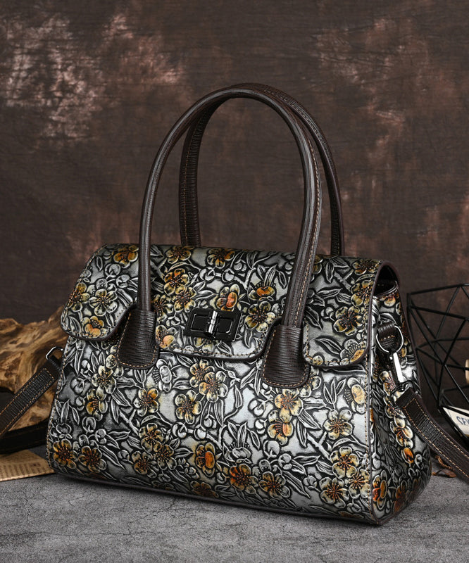 New Retro Silver Embossed Calf Leather Tote Handbag