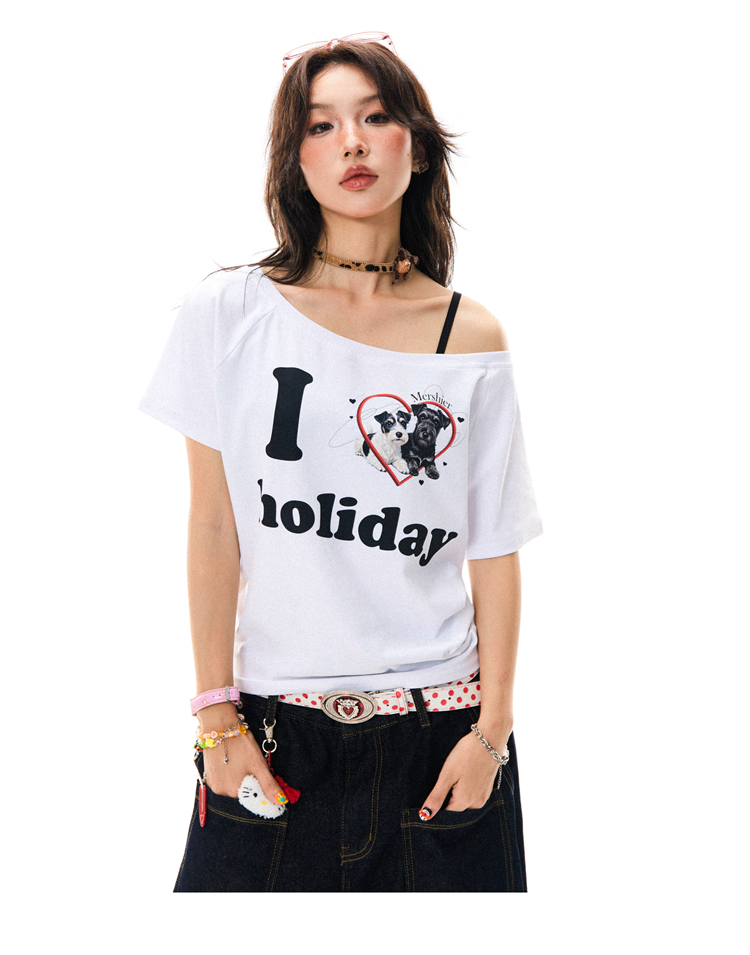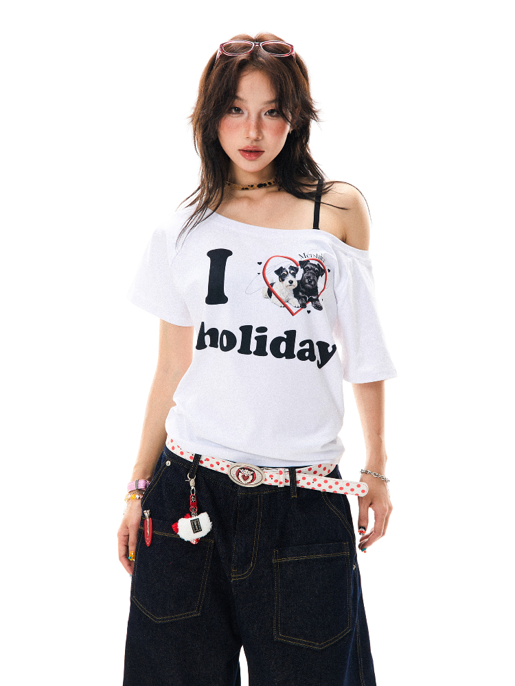 Embrace your playful side with our Off-Shoulder Puppy Heart Print Short Sleeve T-Shirt for Women, designed for those who love to showcase their unique style. This vintage American-inspired summer top features a flattering off-shoulder fit and a charming puppy heart print that adds a touch of whimsy to your warm-weather wardrobe. Perfect for hot girls looking to stay cool and trendy, this tee pairs effortlessly with shorts or skirts for a chic, laid-back look. Don’t miss out on this must-have addition—add it to your cart today!