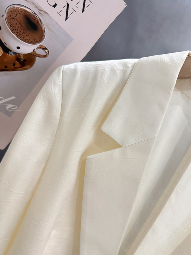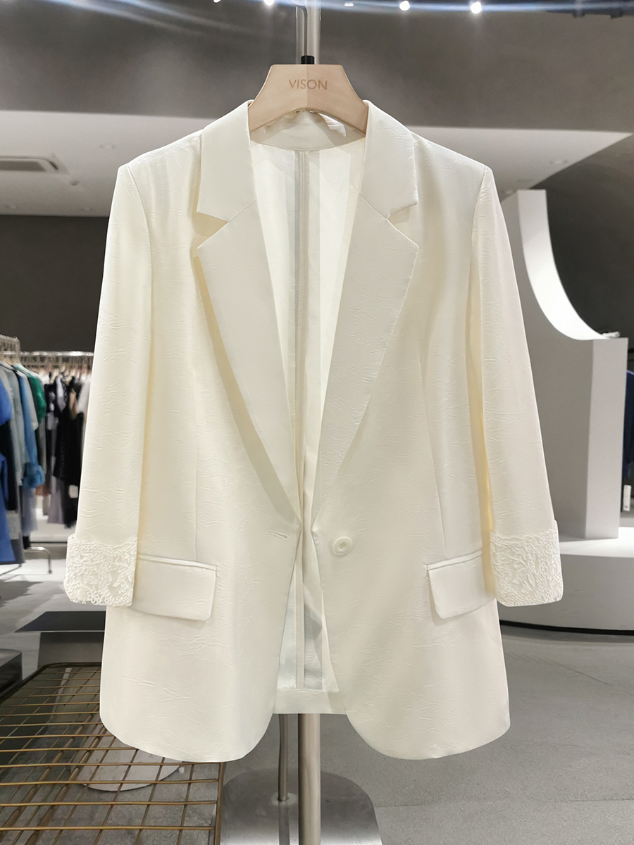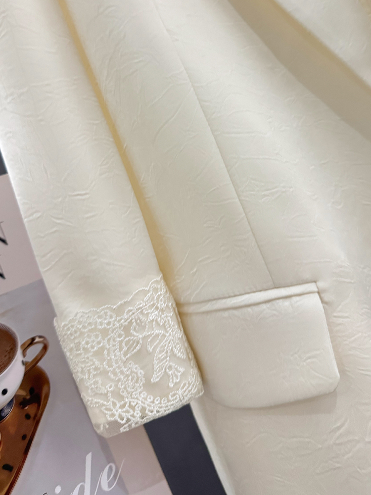 Off White Lace Cuff Blazer Women ummer, Acetate Textured Suit, Layering High-quality product featuring prom dresses, spring outfits, business casual outfits and more. Modern design that fits the latest trends. Premium materials ensure durability and comfort. Order now for special offers! Product designed with attention to every detail. Suitable for all occasions and personal styles.