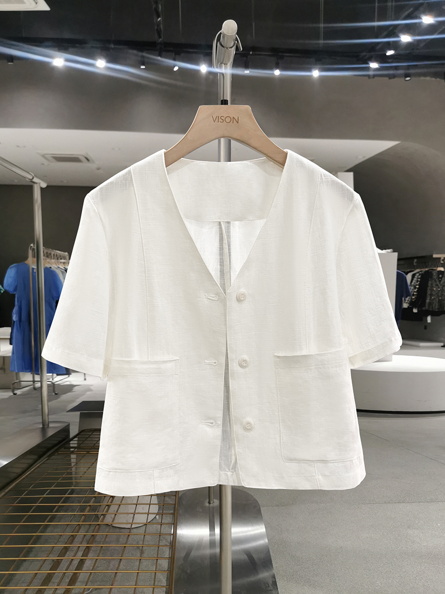 Off White V- Neck Linen Short Jacket Women Korean, Summer Thin Top High-quality product featuring prom dresses, spring outfits, business casual outfits and more. Modern design that fits the latest trends. Premium materials ensure durability and comfort. Order now for special offers! Product designed with attention to every detail. Suitable for all occasions and personal styles.