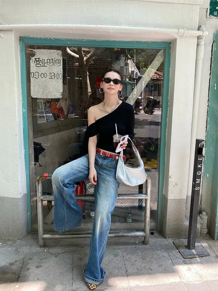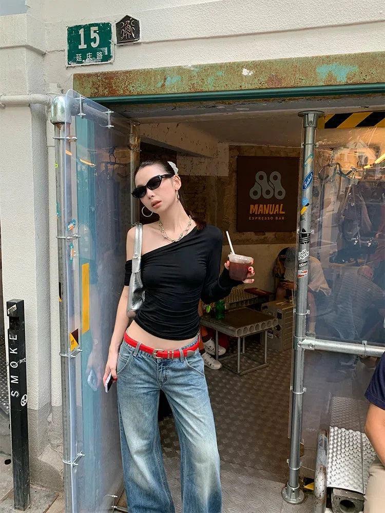 This one-shoulder basic top adds a sleek, modern touch to any outfit. The asymmetrical neckline and fitted silhouette create a stylish look, while the soft, stretchy fabric ensures all-day comfort. Perfect for casual and streetwear styling.