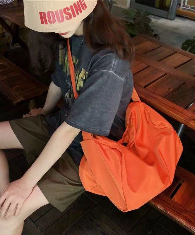 Orange Messenger Bag Nylon Oversize Patchwork Zippered