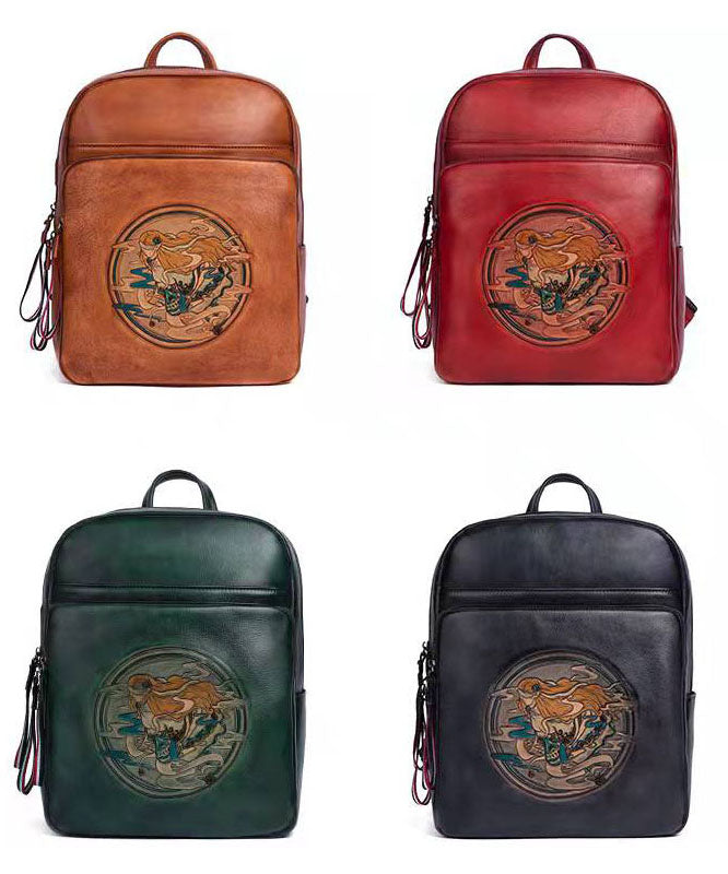 Organic Black character Paitings Calf Leather Tote Handbag