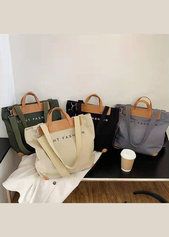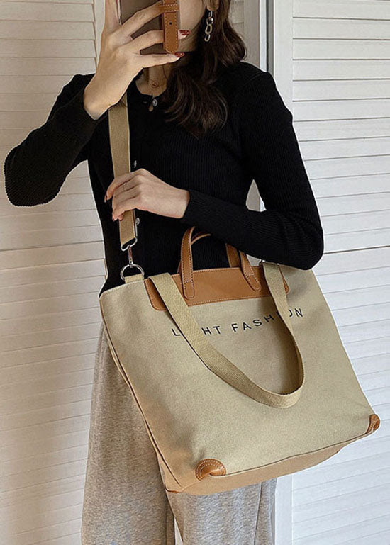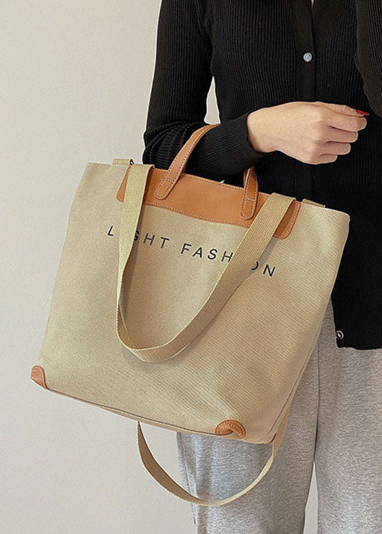 Organic Khaki Graphic Print Canvas Tote Handbag