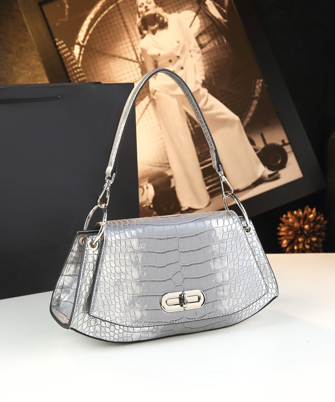 Organic Silver Embossed Calf Leather Satchel Handbag