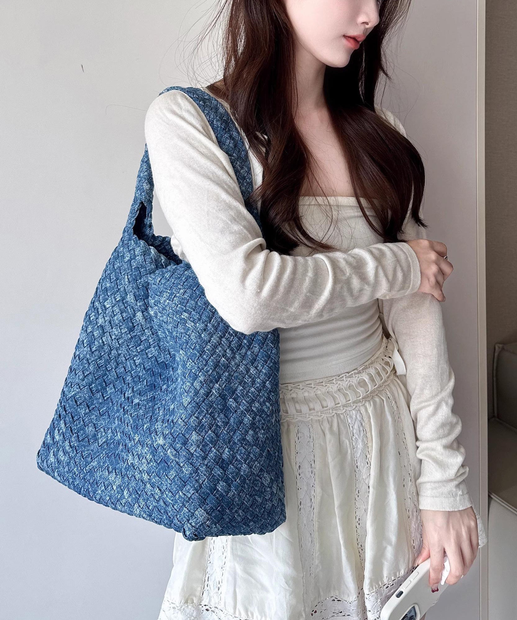 Original Design Blue Denim Large Capacity Shoulder Bag