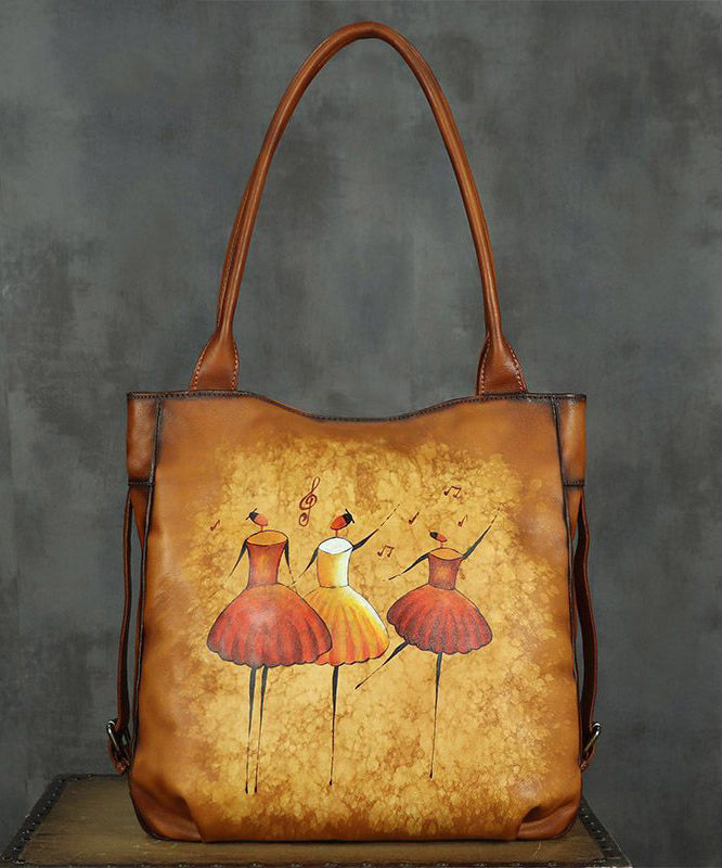 Original Design DIY Paitings Calf Leather Satchel Handbag