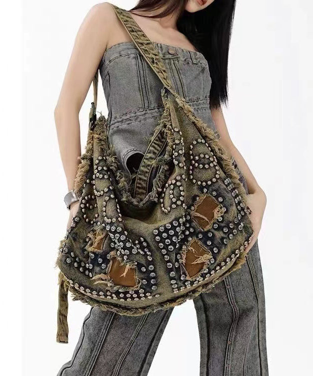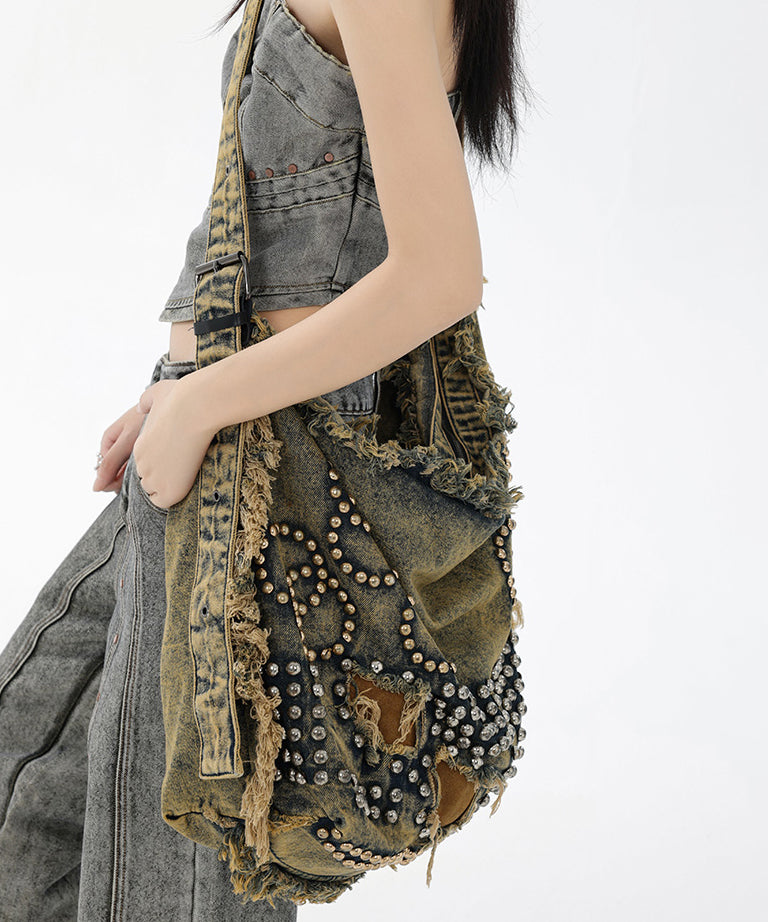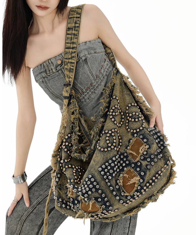 Original Design Large Capacity Rivet Denim Satchel Bag Handbag