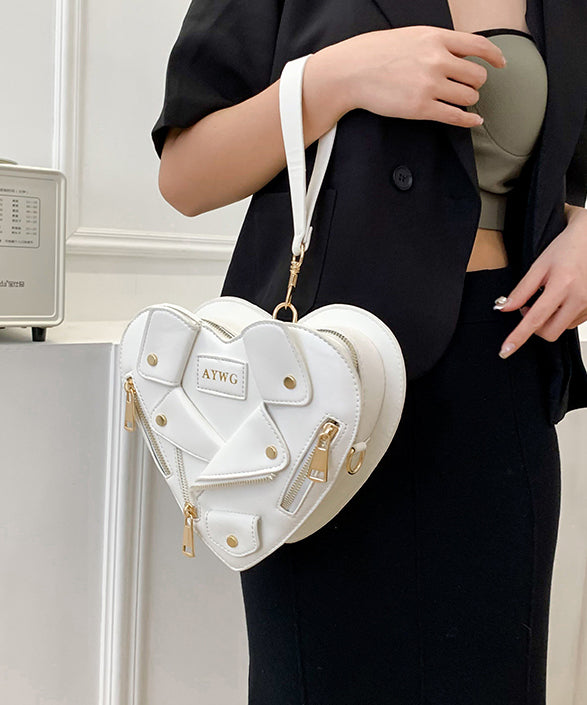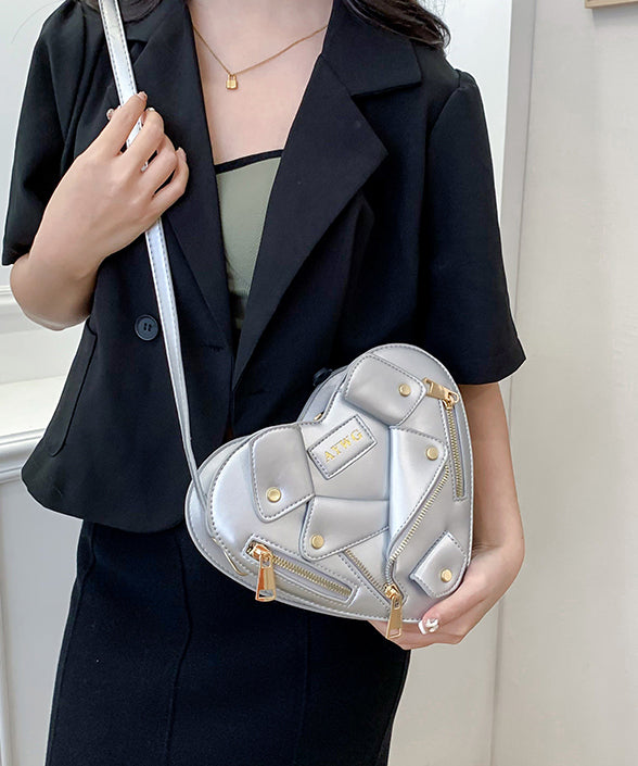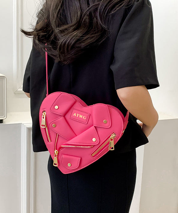 Original Design Pink Heart Zippered Patchwork Faux Leather Messenger Bag