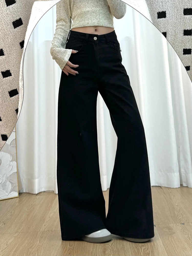 Petite Women Black Wide Leg Jeans, Loose Fit Flared Pants Pear Shaped Bodies, Casual High-quality product featuring prom dresses, spring outfits, business casual outfits and more. Modern design that fits the latest trends. Premium materials ensure durability and comfort. Order now for special offers! Product designed with attention to every detail. Suitable for all occasions and personal styles.