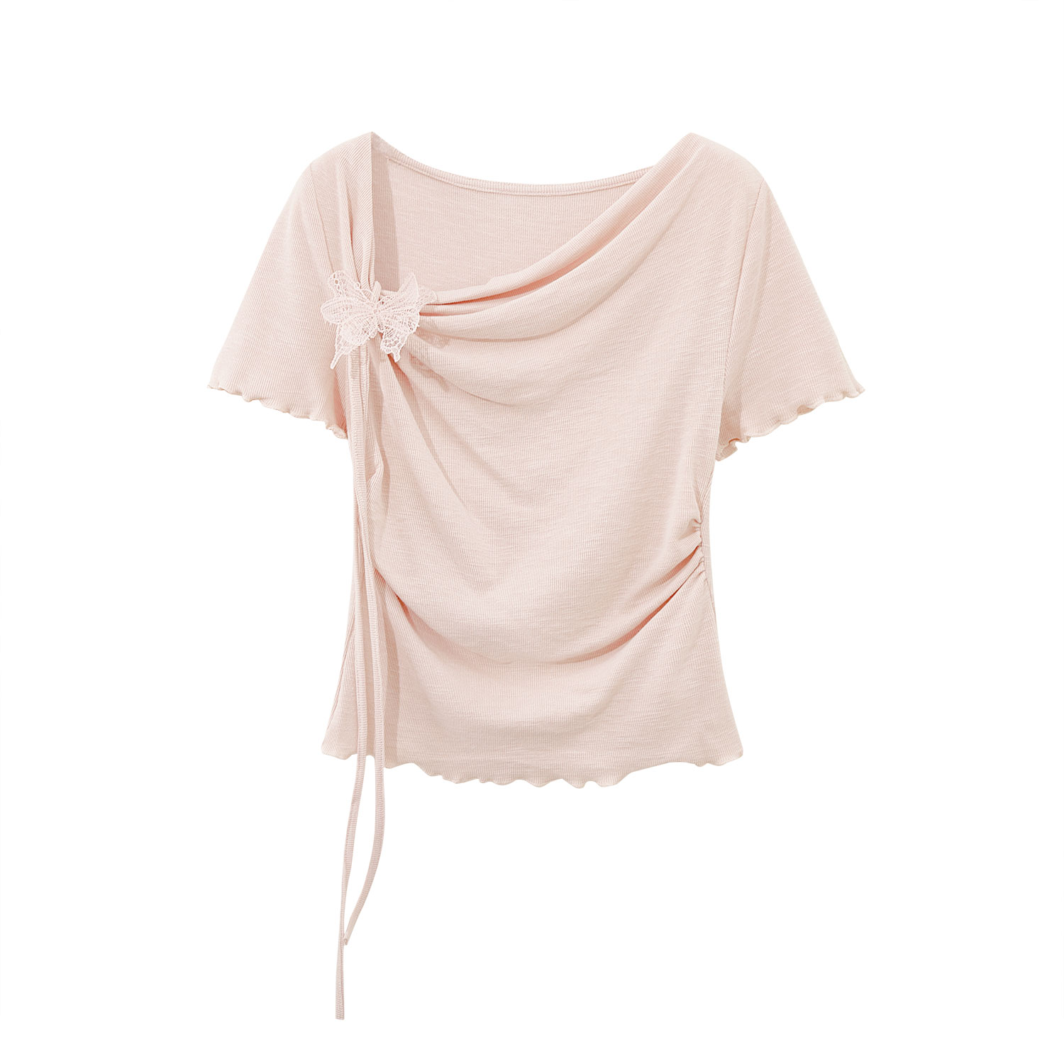 Embrace the summer vibes with our Pink Sweet Women’s Off-Shoulder Short Sleeve T-Shirt, featuring an eye-catching irregular ruffle edge and charming butterfly decor. This trendy top offers a flattering fit that highlights your shoulders and adds a playful touch to any outfit, making it perfect for both casual outings and special occasions. Elevate your wardrobe this season and make a statement with ease—add this must-have piece to your cart today!