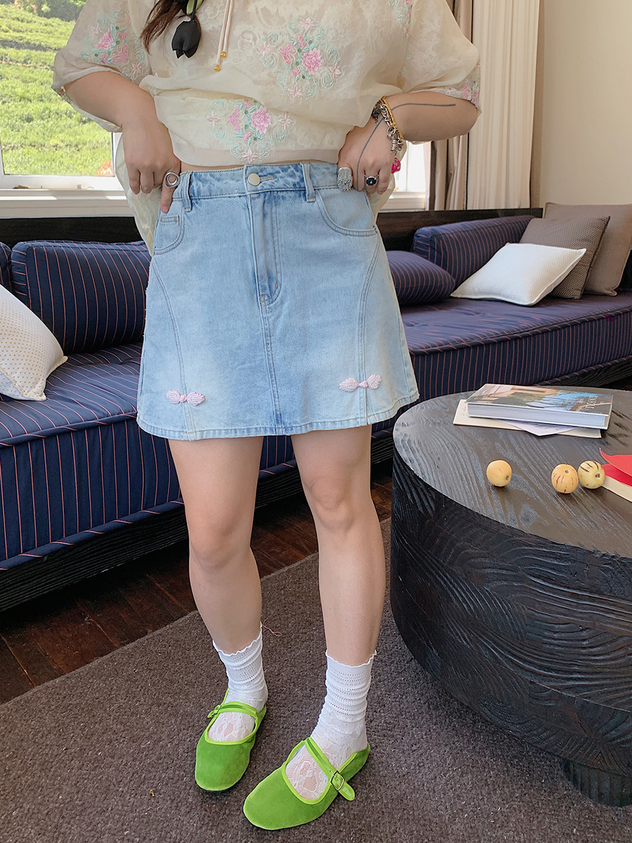 Plus Size a Line Denim Skirt Women, Buckle, Ummer, Short Ski – Outfit Ideas