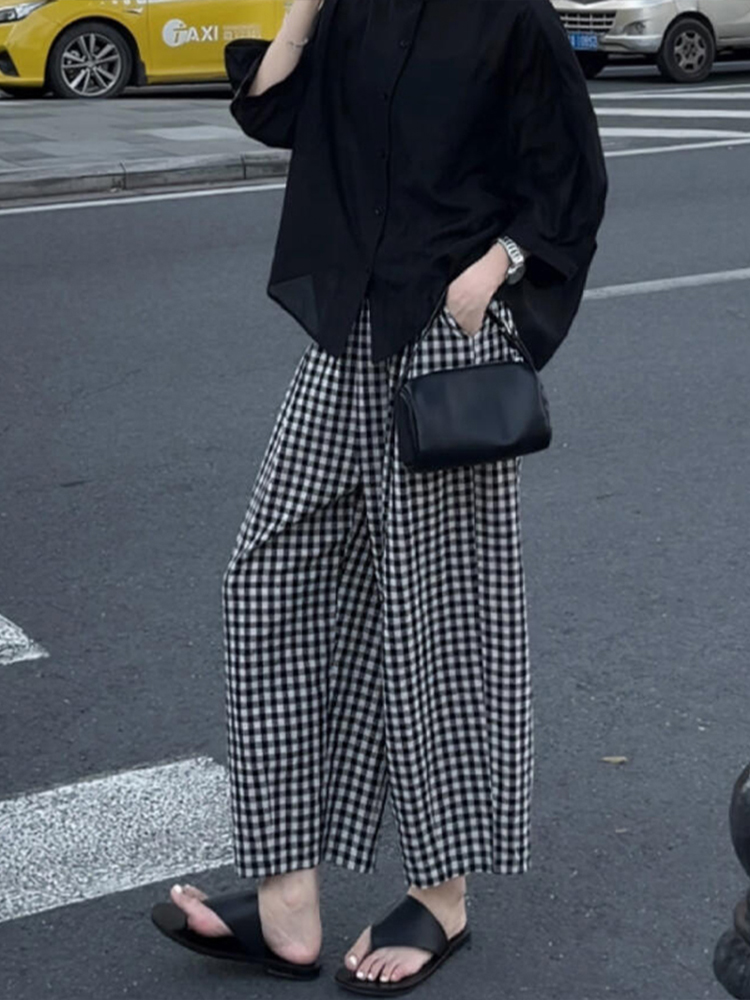 Plus Size Black, White Checkered Wide Leg Pants Women Loose – Outfit Ideas High-quality product featuring prom dresses, spring outfits, business casual outfits and more. Modern design that fits the latest trends. Premium materials ensure durability and comfort. Order now for special offers! Product designed with attention to every detail. Suitable for all occasions and personal styles.