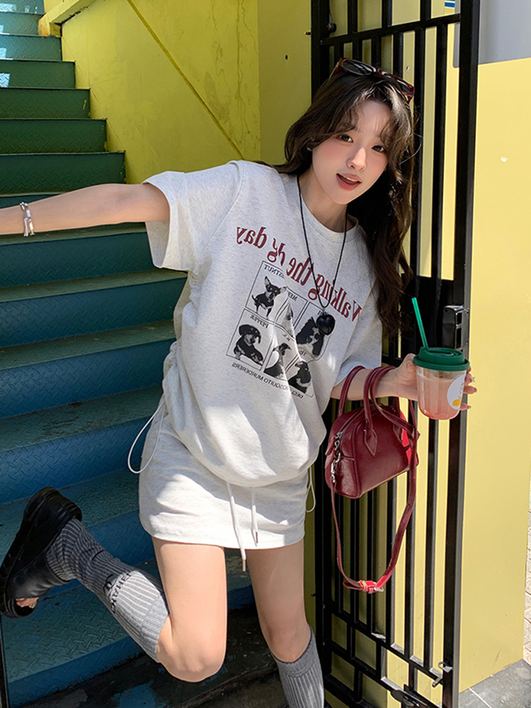 Plus Size Cartoon Print Drawstring Short Sleeve, High Waiste – Outfit Ideas