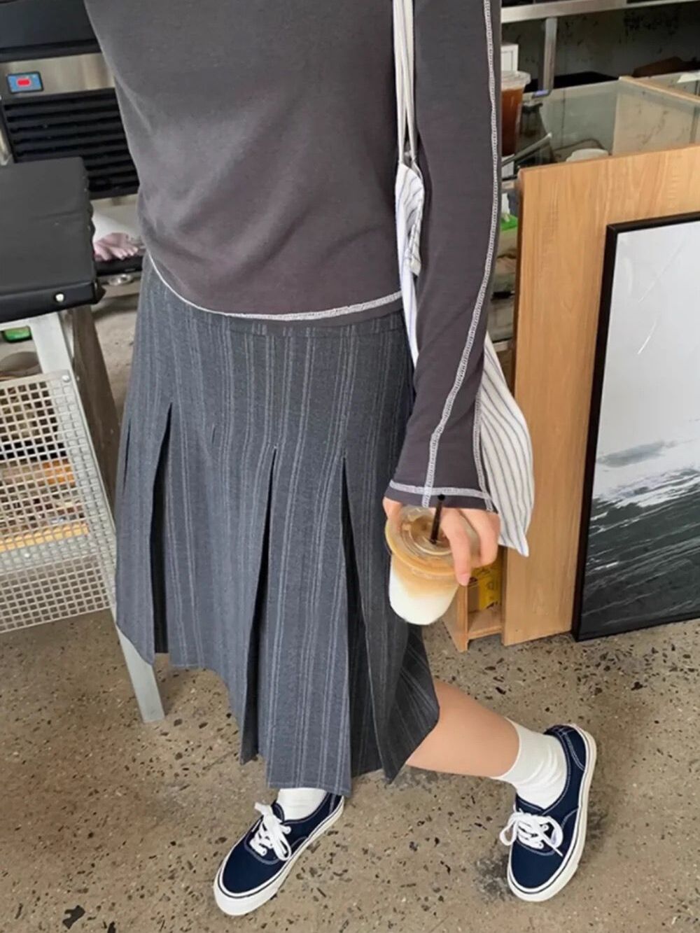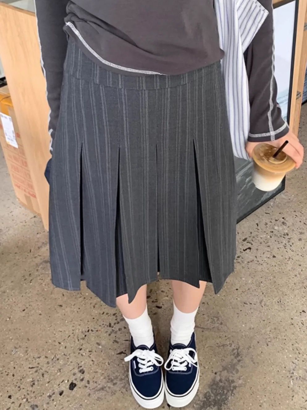 Plus Size Gray Striped High Waisted a Line Mid Length Pleate – Outfit Ideas High-quality product featuring prom dresses, spring outfits, business casual outfits and more. Modern design that fits the latest trends. Premium materials ensure durability and comfort. Order now for special offers! Product designed with attention to every detail. Suitable for all occasions and personal styles.