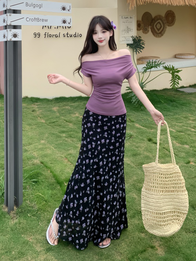 Plus Size Off Shoulder Floral Two Set Women Summer Short Sleeve High Waisted Skirt High-quality product featuring prom dresses, spring outfits, business casual outfits and more. Modern design that fits the latest trends. Premium materials ensure durability and comfort. Order now for special offers! Product designed with attention to every detail. Suitable for all occasions and personal styles.