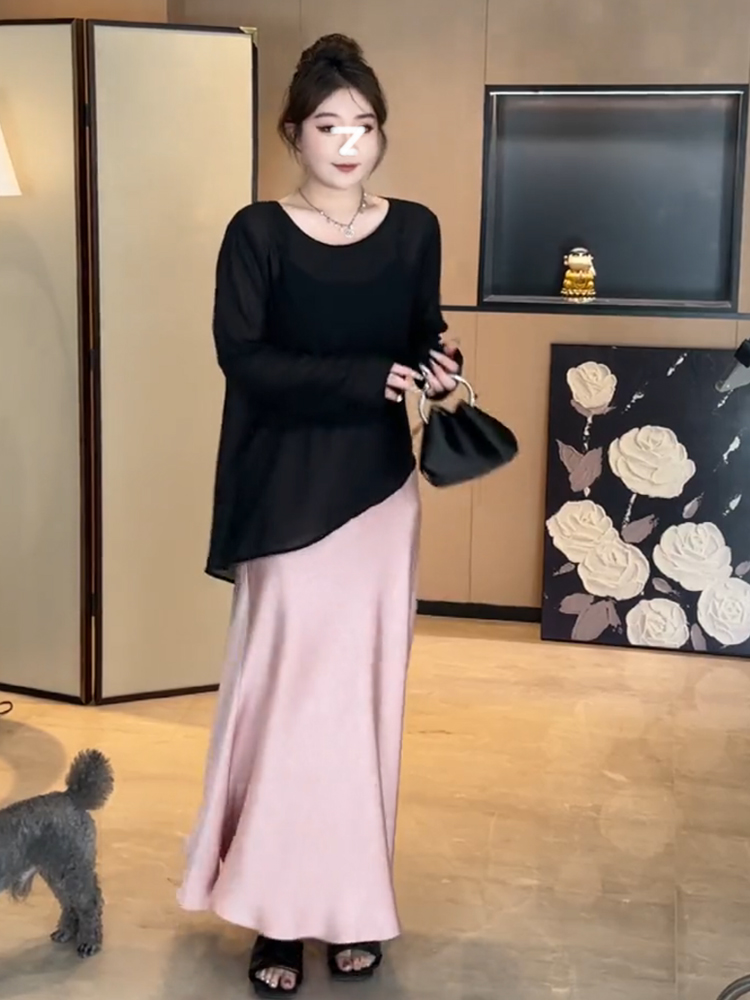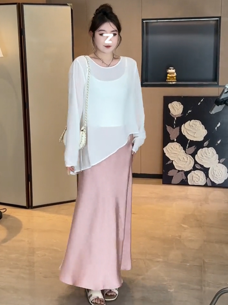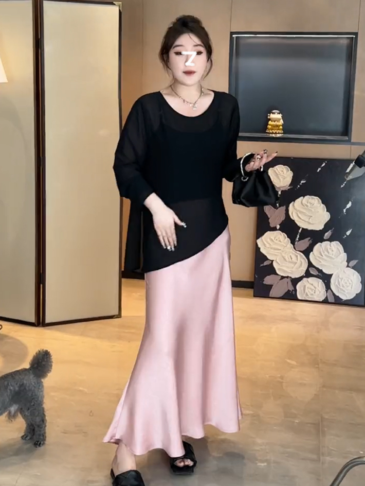 Plus Size Women Butterfly Hollow Back Top, Satin Fishtail Sk – Outfit Ideas