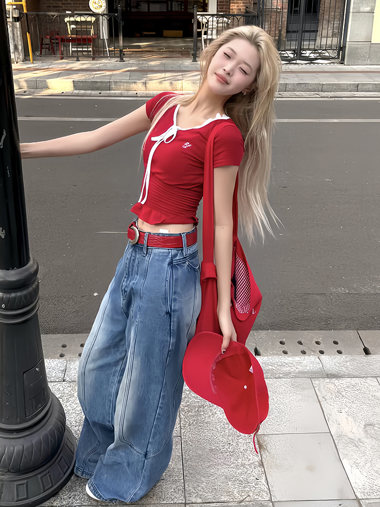 Elevate your summer wardrobe with our stunning Red Lace V-Neck Short Sleeve Slim Fit Cropped T-Shirt, designed for the spicy girl in you! This unique piece combines a flattering slim fit with delicate lace details, perfect for showcasing your playful side while keeping you cool and stylish. Ideal for pairing with high-waisted jeans or skirts, this top is a must-have for any fashion-forward outfit. Don’t miss out on this eye-catching addition—add to your cart today and embrace your bold style!