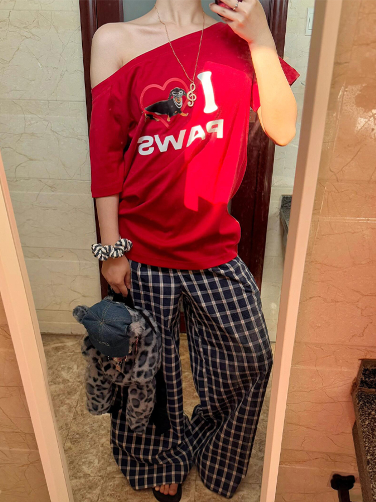 Red Off Shoulder Short Sleeve Women Summer Sausage Dog Print Casual Loose Fit Top High-quality product featuring prom dresses, spring outfits, business casual outfits and more. Modern design that fits the latest trends. Premium materials ensure durability and comfort. Order now for special offers! Product designed with attention to every detail. Suitable for all occasions and personal styles.
