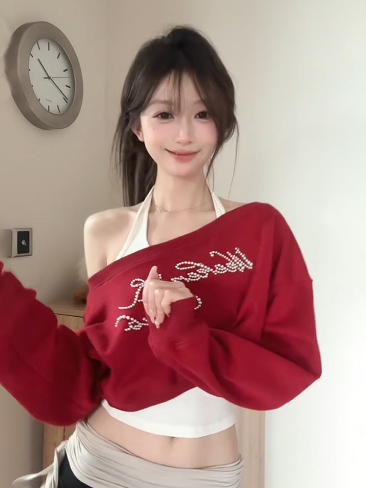 Elevate your spring wardrobe with this stunning Red Off-Shoulder Sweatshirt Set for Women. Featuring a trendy loose fit and stylish long sleeves, this two-piece outfit is adorned with eye-catching rhinestone letter details that make a bold fashion statement. Perfect for casual outings or lounging in style, this set combines comfort and chic effortlessly. Don’t miss out on this must-have addition to your collection—add to your cart today!