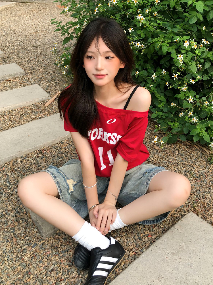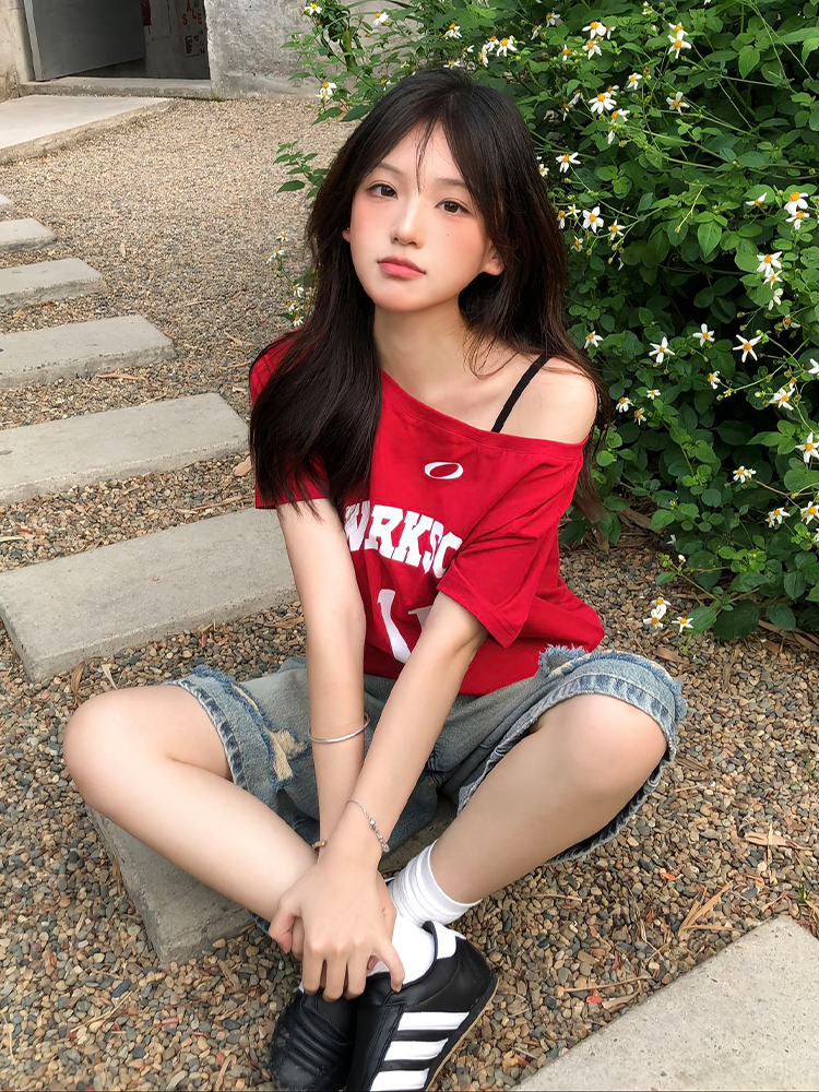 Red One Shoulder Short Sleeve Women Summer Letter Print Casual Off Shoulder Loose Top Y2K High-quality product featuring prom dresses, spring outfits, business casual outfits and more. Modern design that fits the latest trends. Premium materials ensure durability and comfort. Order now for special offers! Product designed with attention to every detail. Suitable for all occasions and personal styles.