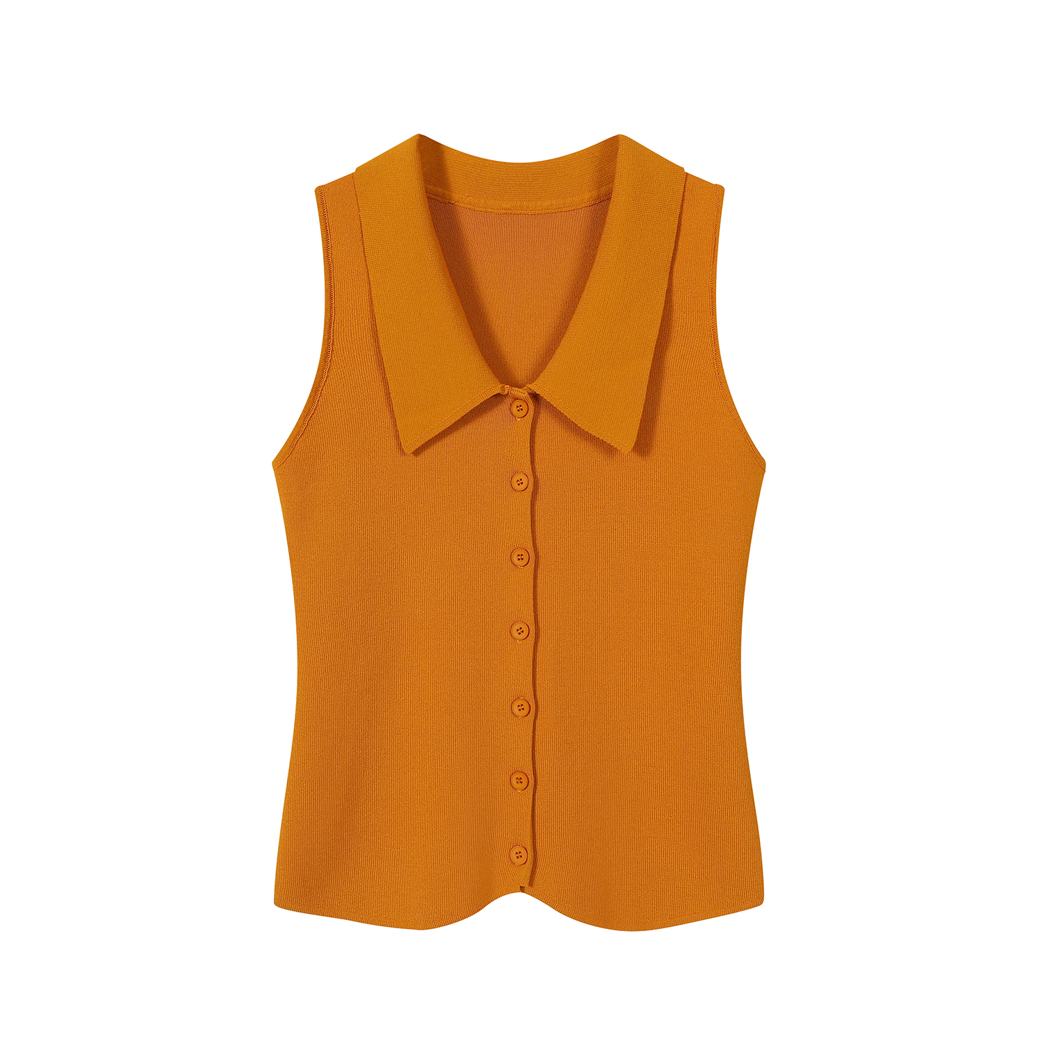Summer Outfit Ideas: Red Sleeveless Polo Collar Knitted V to – Outfit Ideas