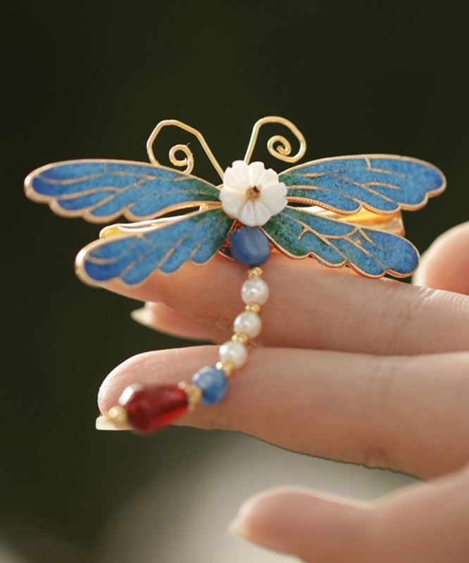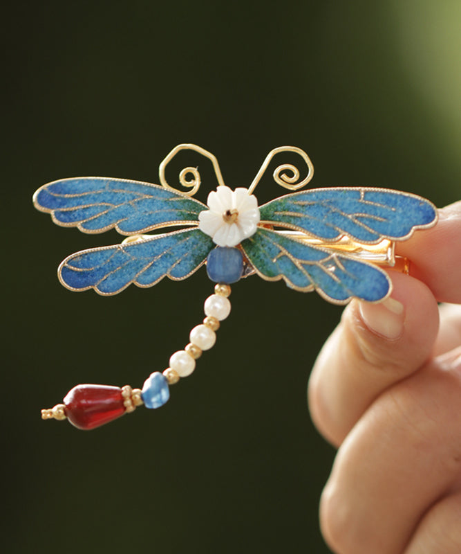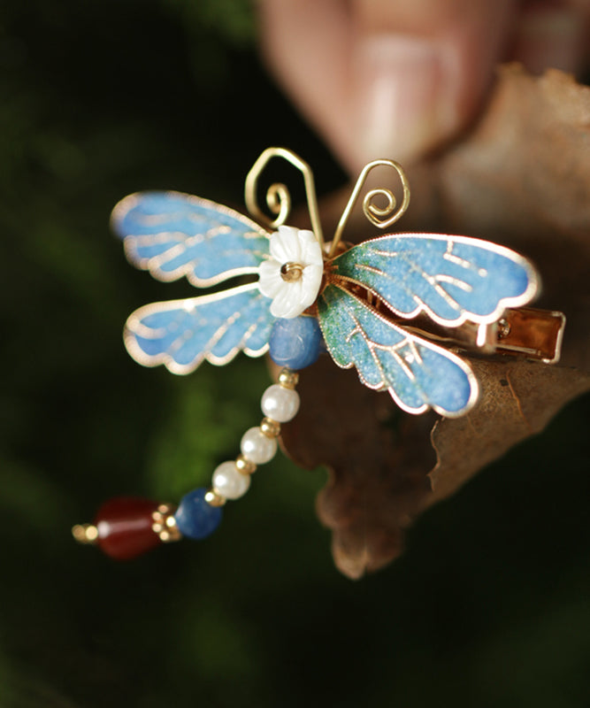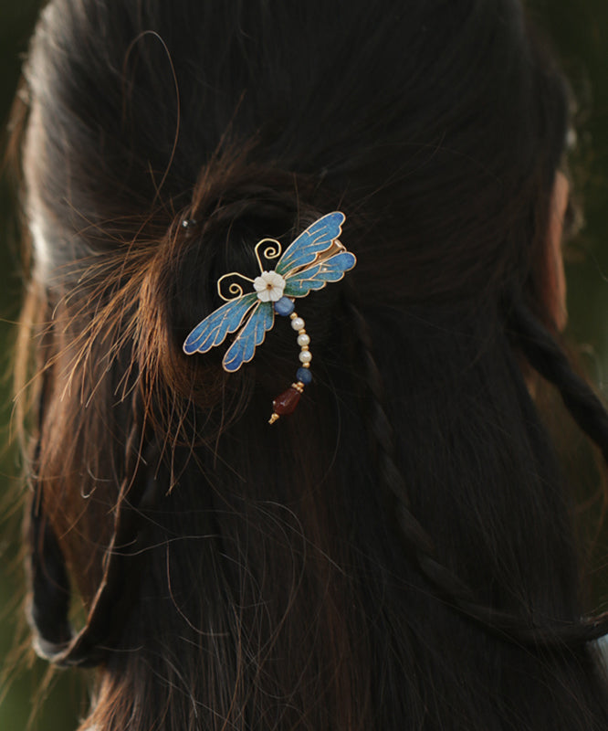 Retro Blue Copper Alloy Pearl Agate Enamel Hairpin