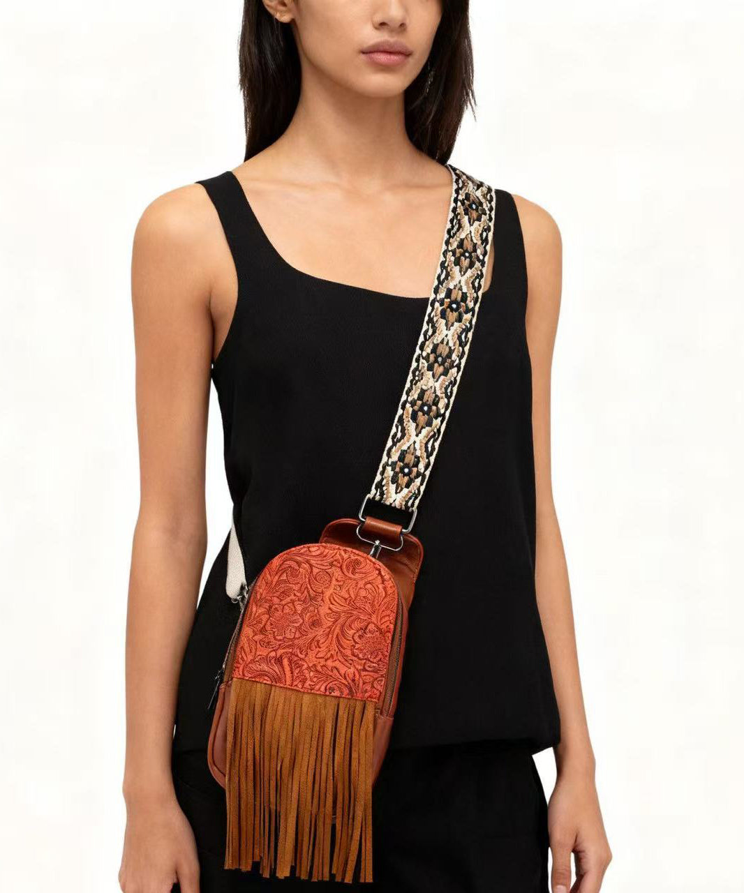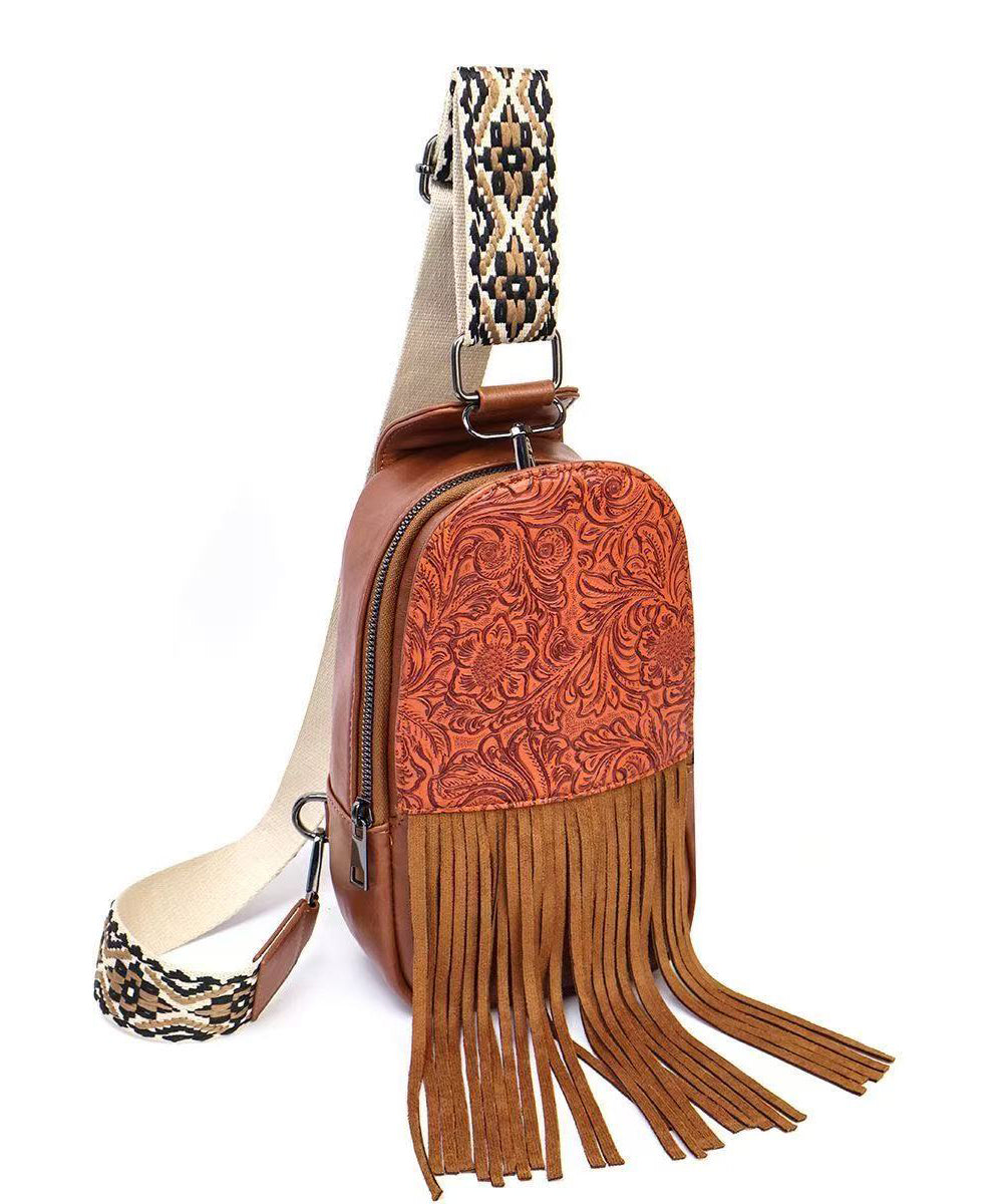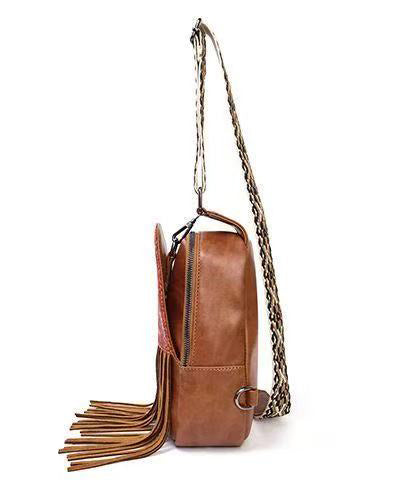 Retro Brown Tasseled Patchwork Embossing Faux Leather Mini Handbag