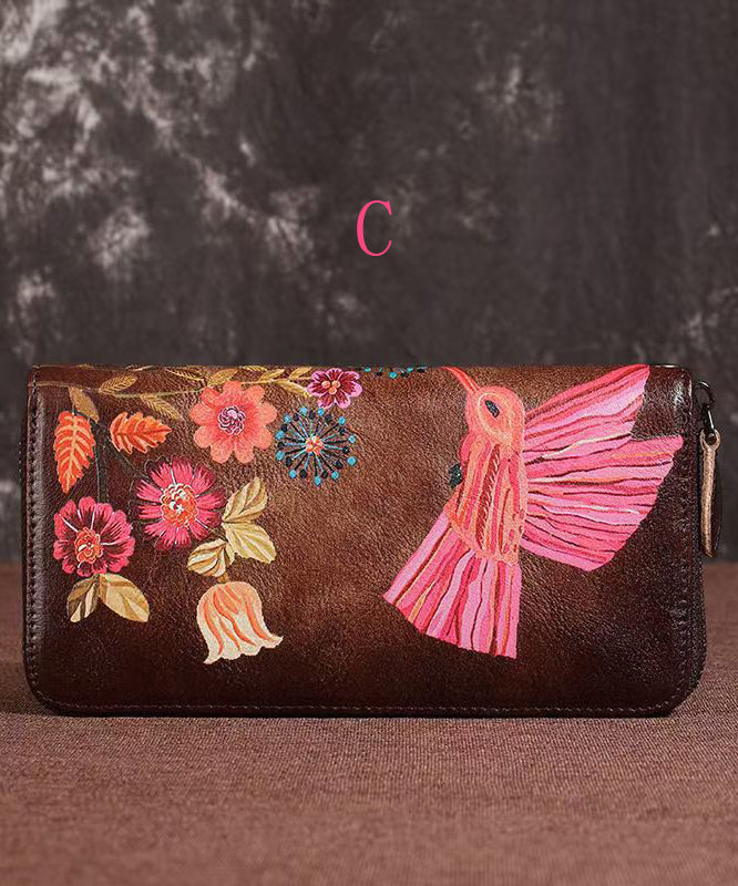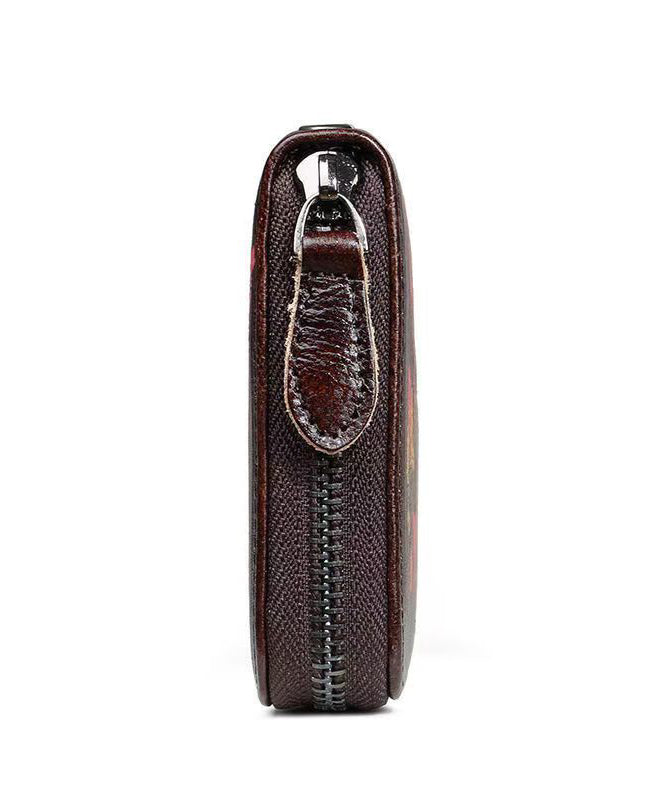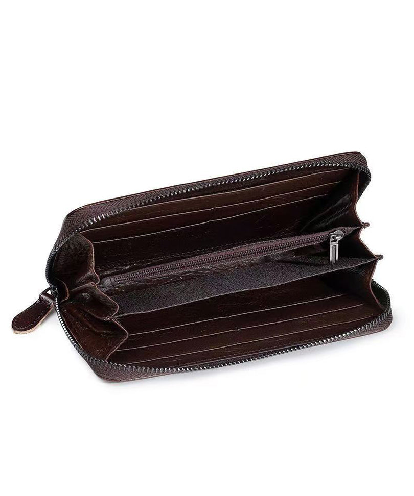 Retro Embossed Durable Calf Leather Zipper Wallet Purse