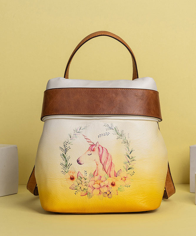 Retro Green Print Paitings Calf Leather Backpack Bag