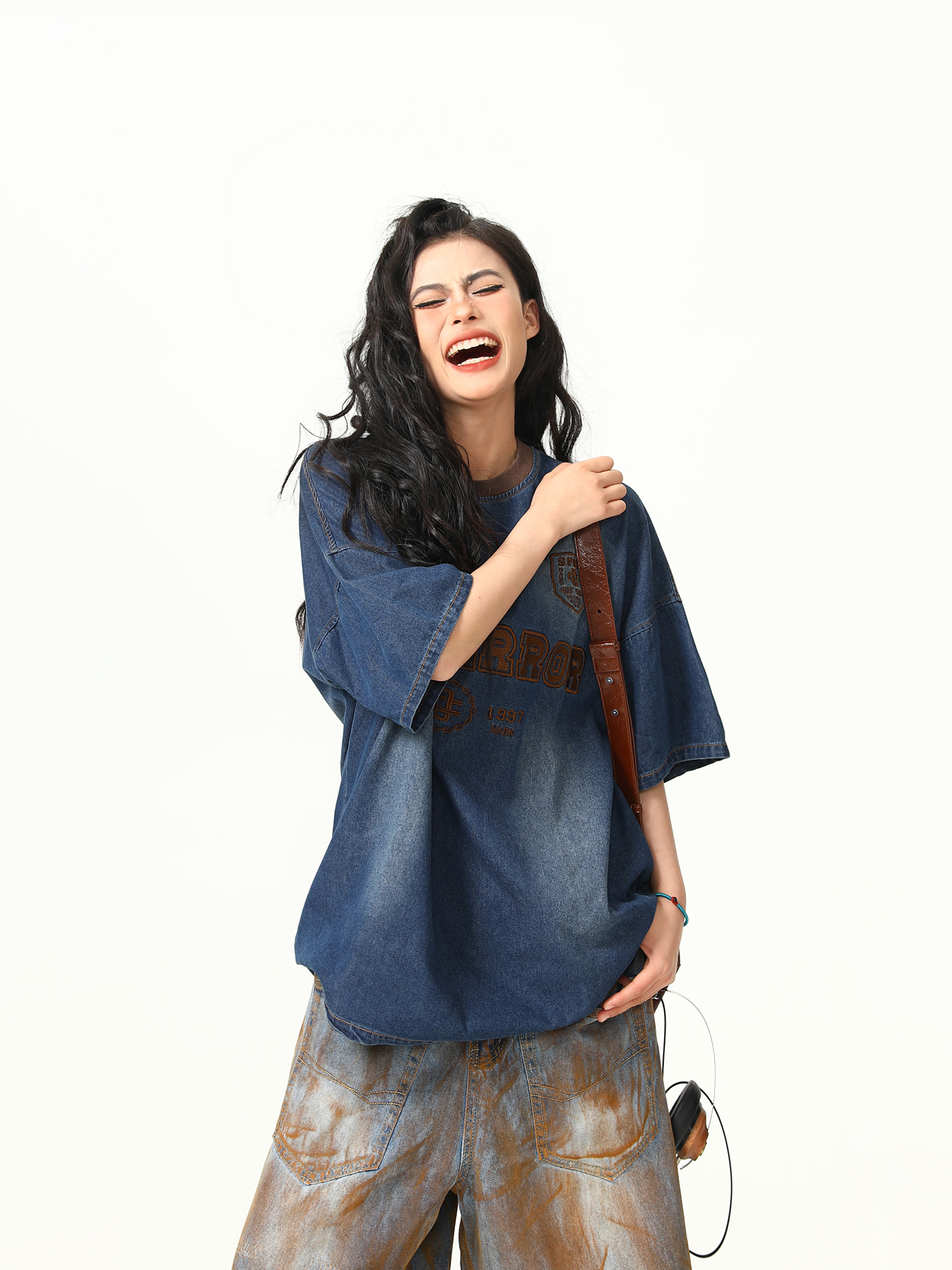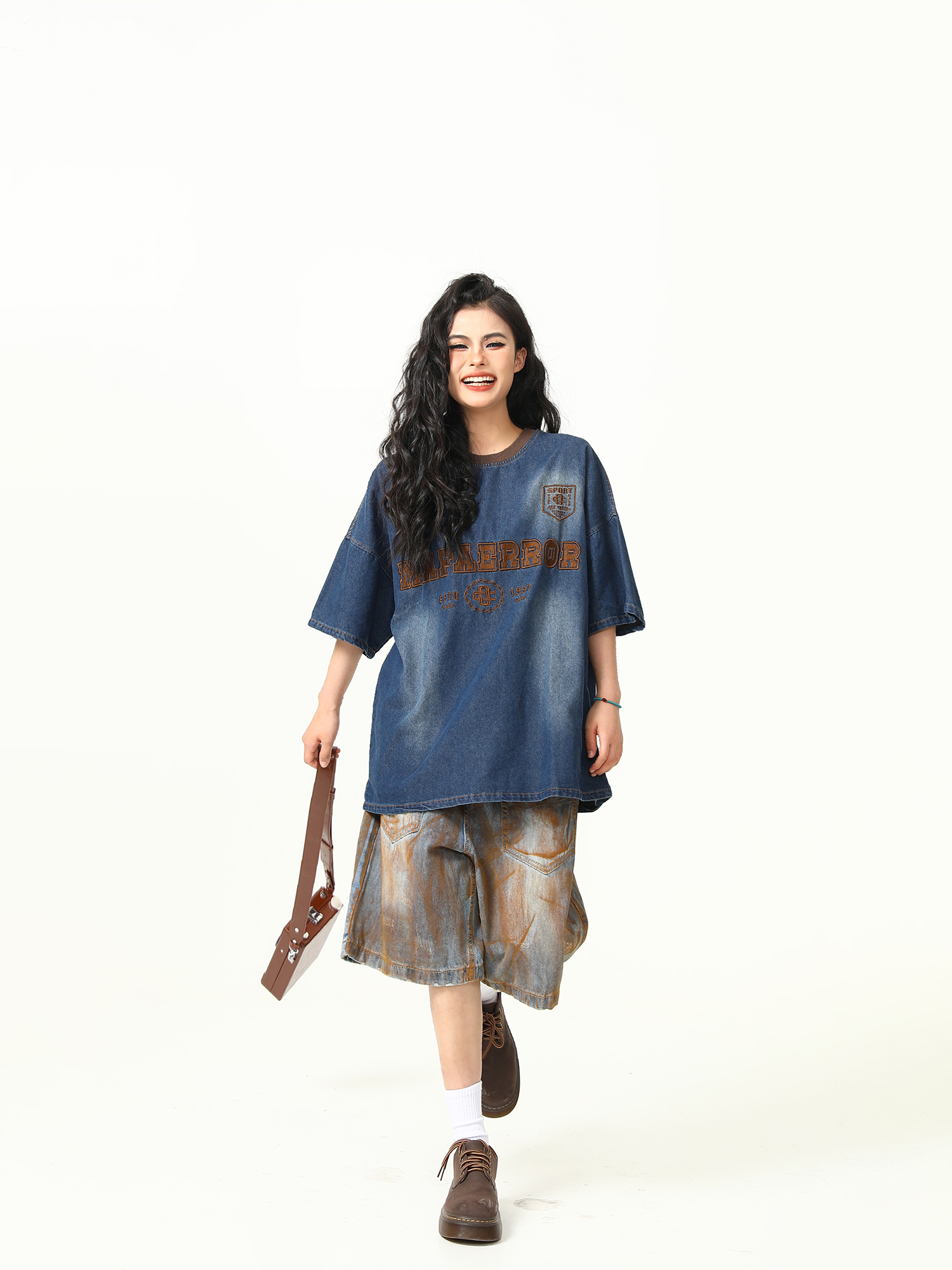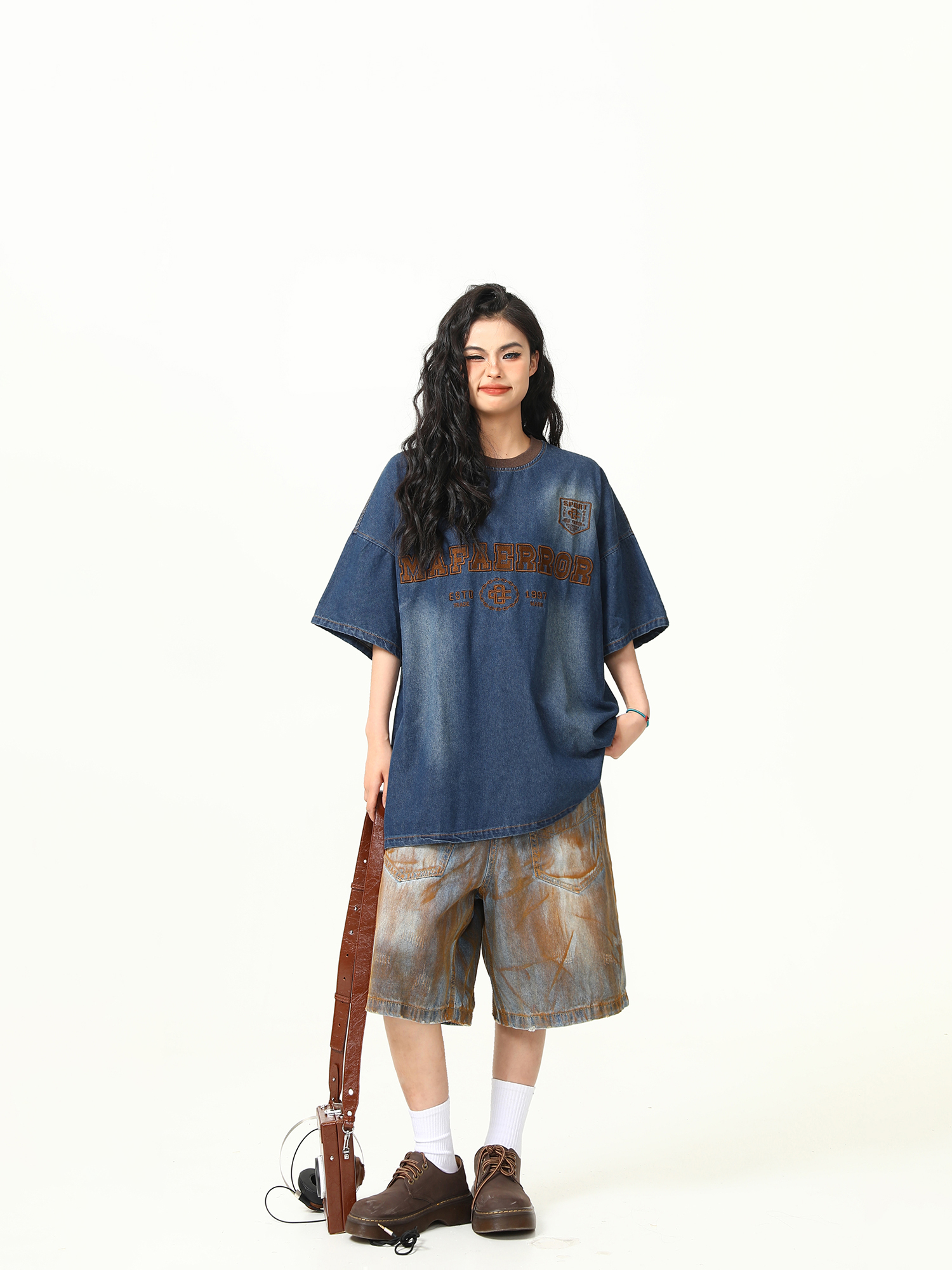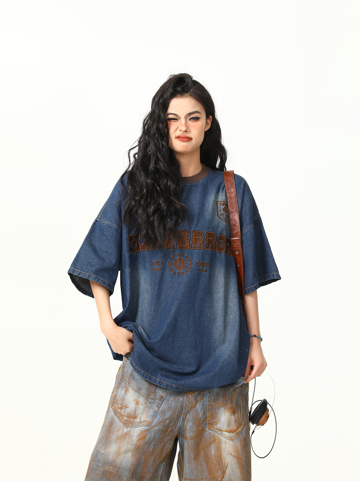 Elevate your summer wardrobe with our Retro Heavy Embroidery Washed Denim Short Sleeve T-shirt, designed for both men and women. This loose fit tee combines comfort and style, featuring intricate embroidery that adds a unique touch to your casual look. Perfect for those warm days, this versatile top pairs effortlessly with shorts or jeans. Don’t miss out on this must-have piece—add it to your cart today and step out in style!