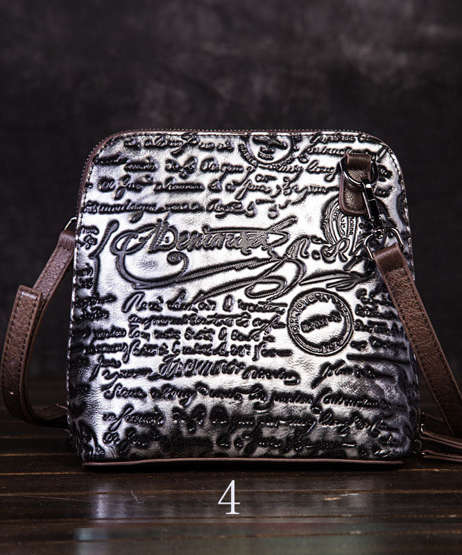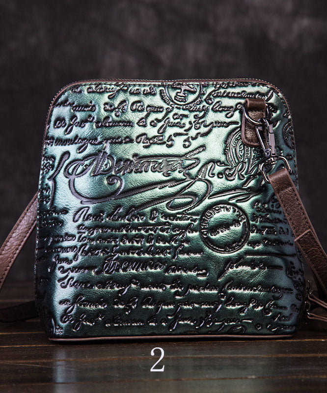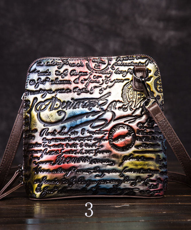 Retro Multicolour Letter Embossing Calf Leather Satchel Handbag