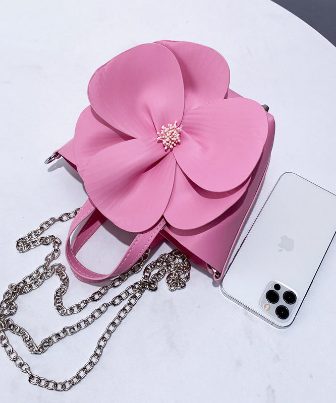 Retro Pink 3D Flower Decorated Faux Leather Evening Bag