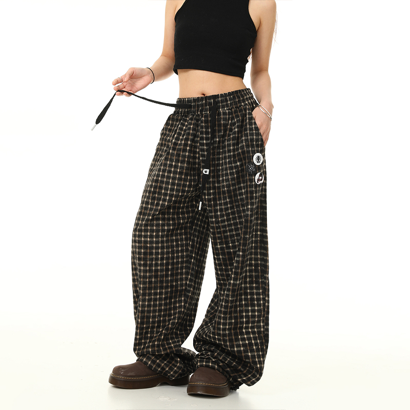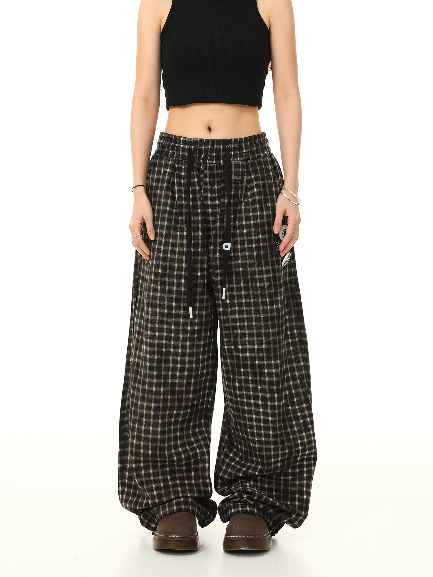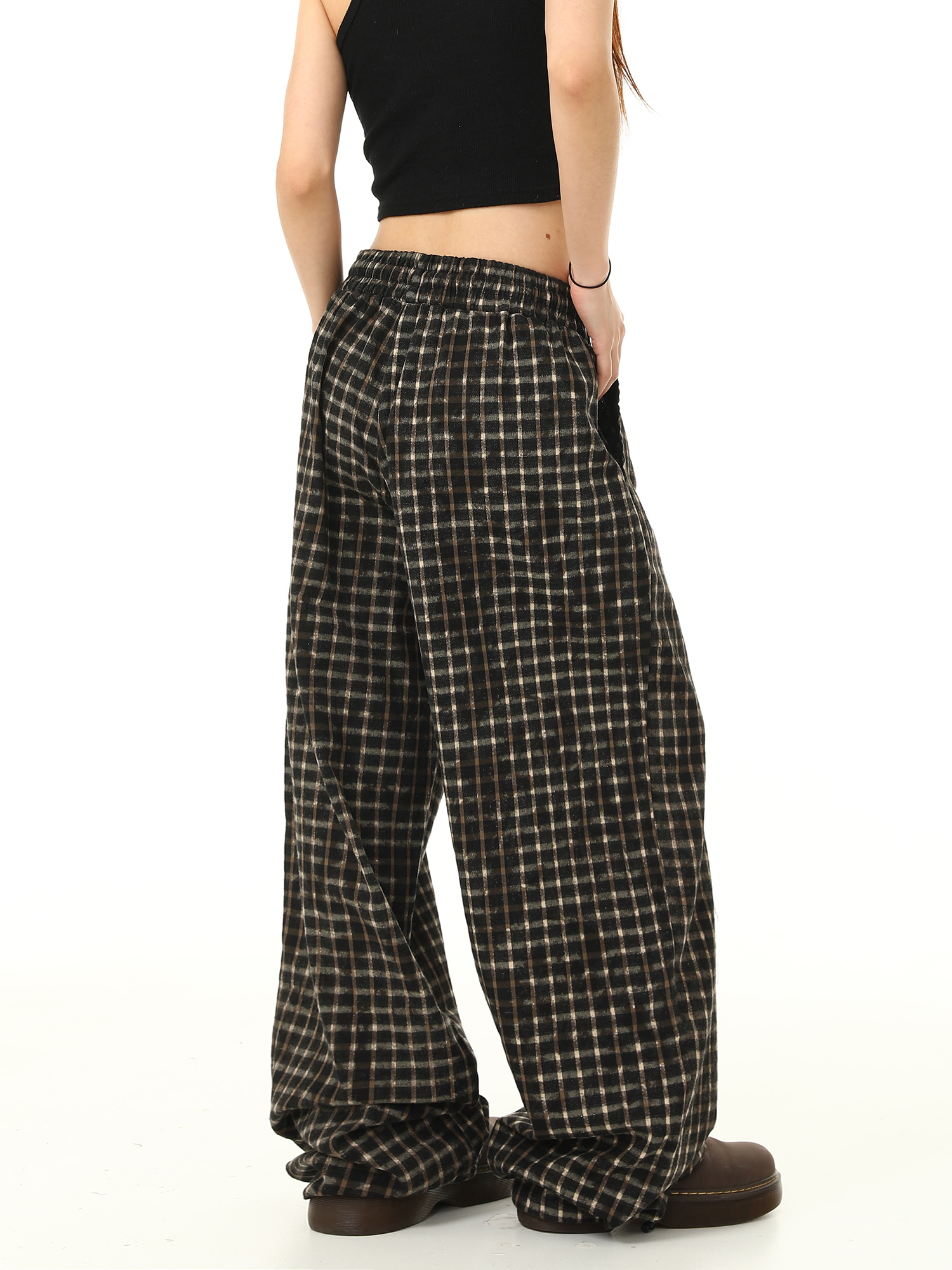 Retro Plaid Wide Leg Casual Pants Elastic Waist, Drawstring Loose Drape Y2K High-quality product featuring prom dresses, spring outfits, business casual outfits and more. Modern design that fits the latest trends. Premium materials ensure durability and comfort. Order now for special offers! Product designed with attention to every detail. Suitable for all occasions and personal styles.