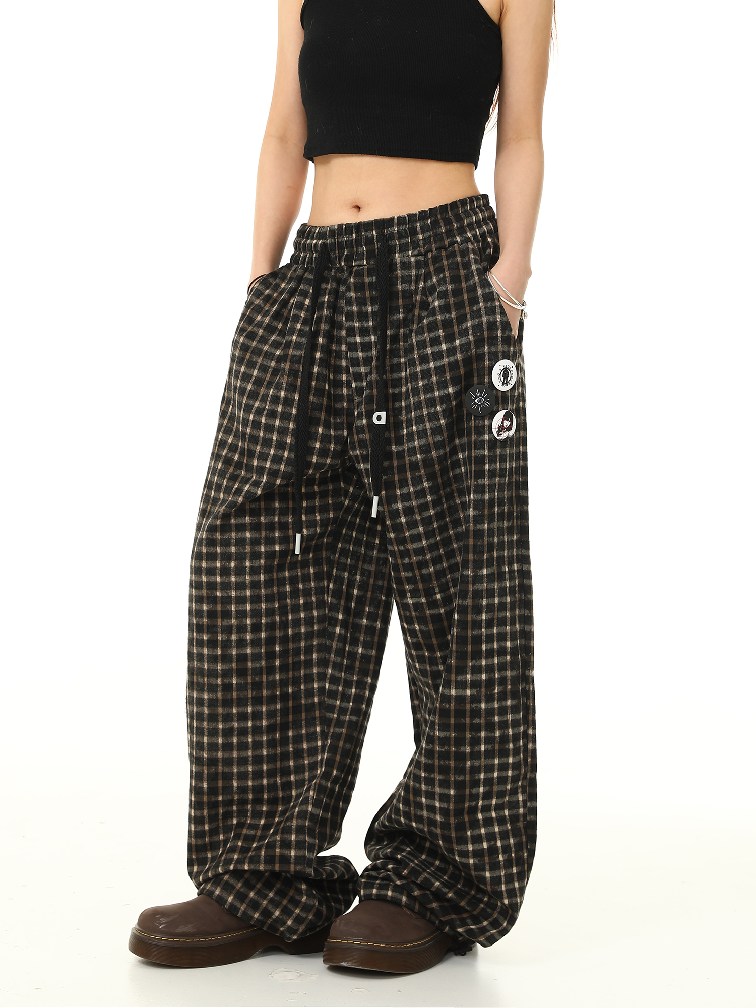 Step into effortless style with our Retro Plaid Wide-Leg Casual Pants, designed for the ultimate Y2K look. Featuring a comfortable elastic waist and adjustable drawstring, these trendy loose drape trousers offer a flattering fit while ensuring all-day ease. Perfect for any casual outing or laid-back weekend, these pants will elevate your wardrobe with their bold plaid pattern. Don’t miss out on this must-have piece—add to your cart today and embrace the retro vibe!