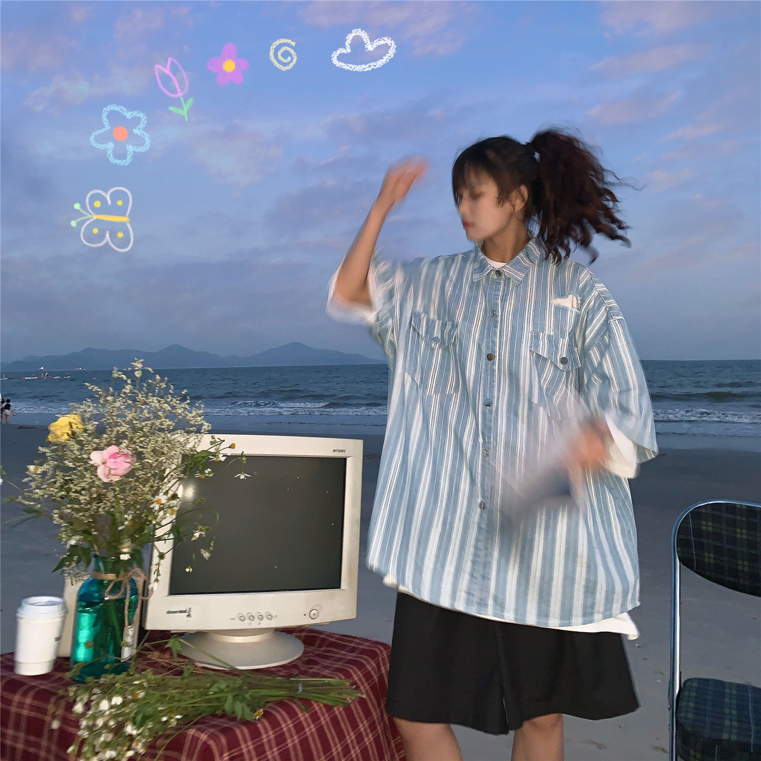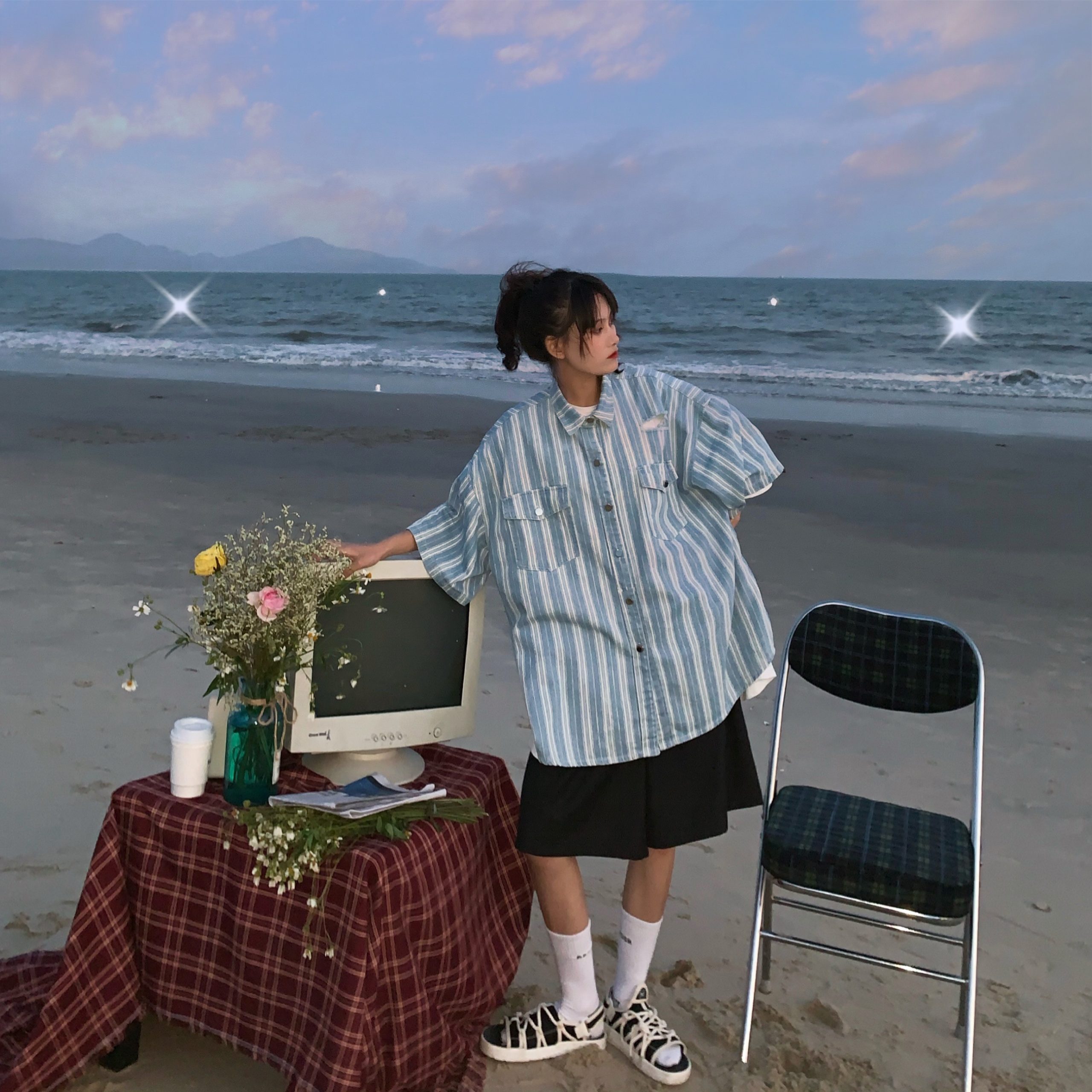 Embrace the essence of summer with our Retro Striped Denim Top, a handmade loose fit shirt designed to channel that trendy 90s vibe. Featuring stylish ripped short sleeves and a unique striped pattern, this shirt offers both comfort and flair, making it the perfect addition to your casual wardrobe. Elevate your fashion game and enjoy the laid-back Hong Kong style—don’t wait, add this must-have piece to your cart today!