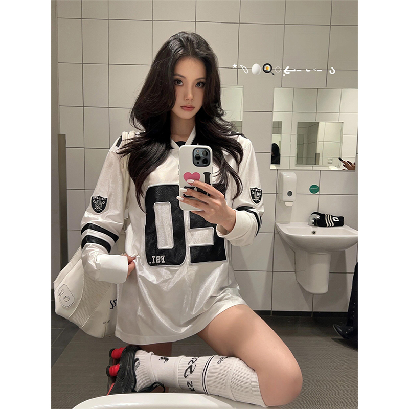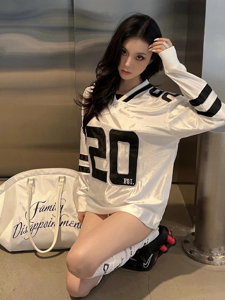 Retro V- Neck Long Sleeve Women, Spring Rugby Jersey, Loose Fit Sports Top, pired High-quality product featuring prom dresses, spring outfits, business casual outfits and more. Modern design that fits the latest trends. Premium materials ensure durability and comfort. Order now for special offers! Product designed with attention to every detail. Suitable for all occasions and personal styles.