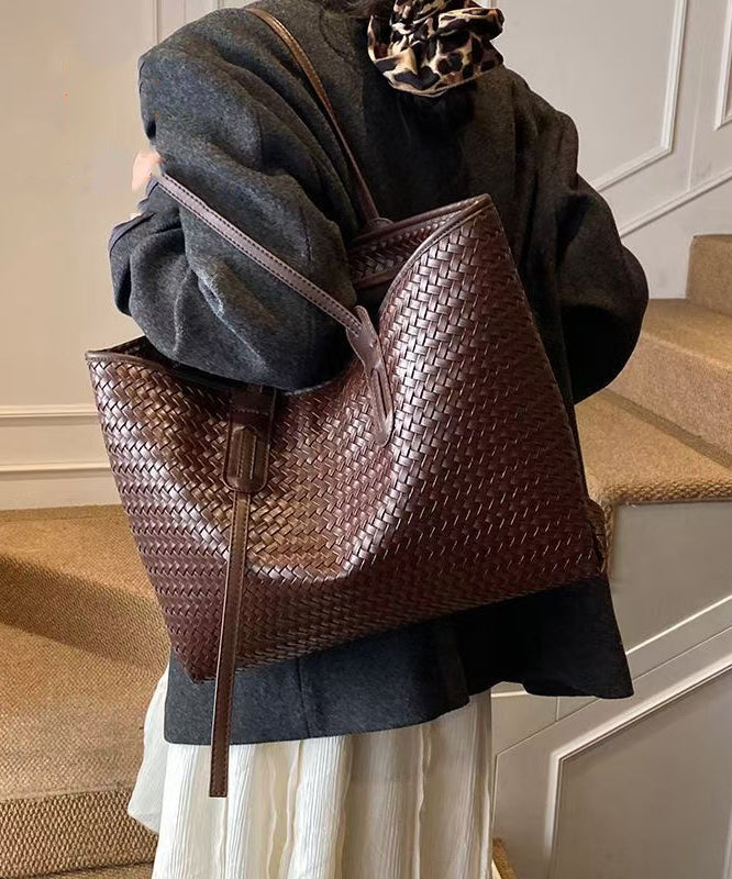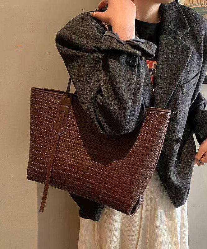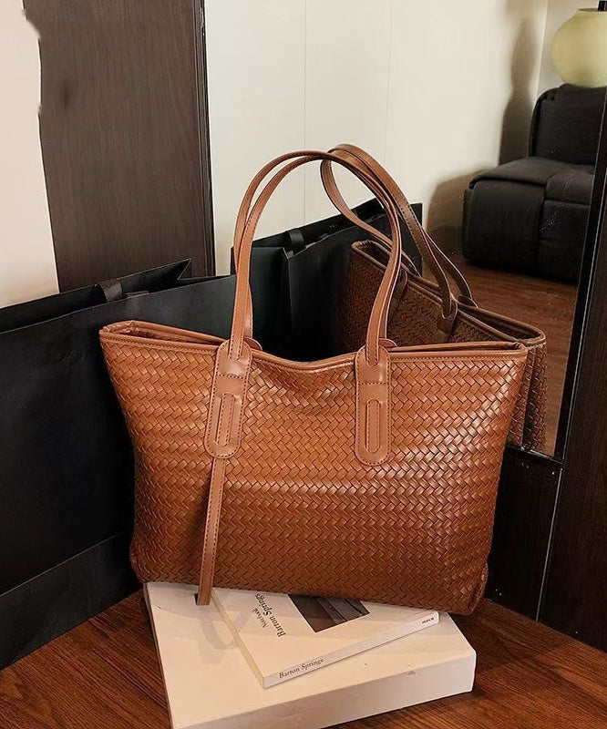 Retro Weave Design Large Capacity Faux Leather Women Handbags