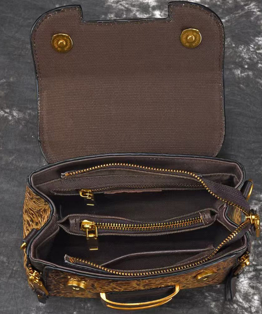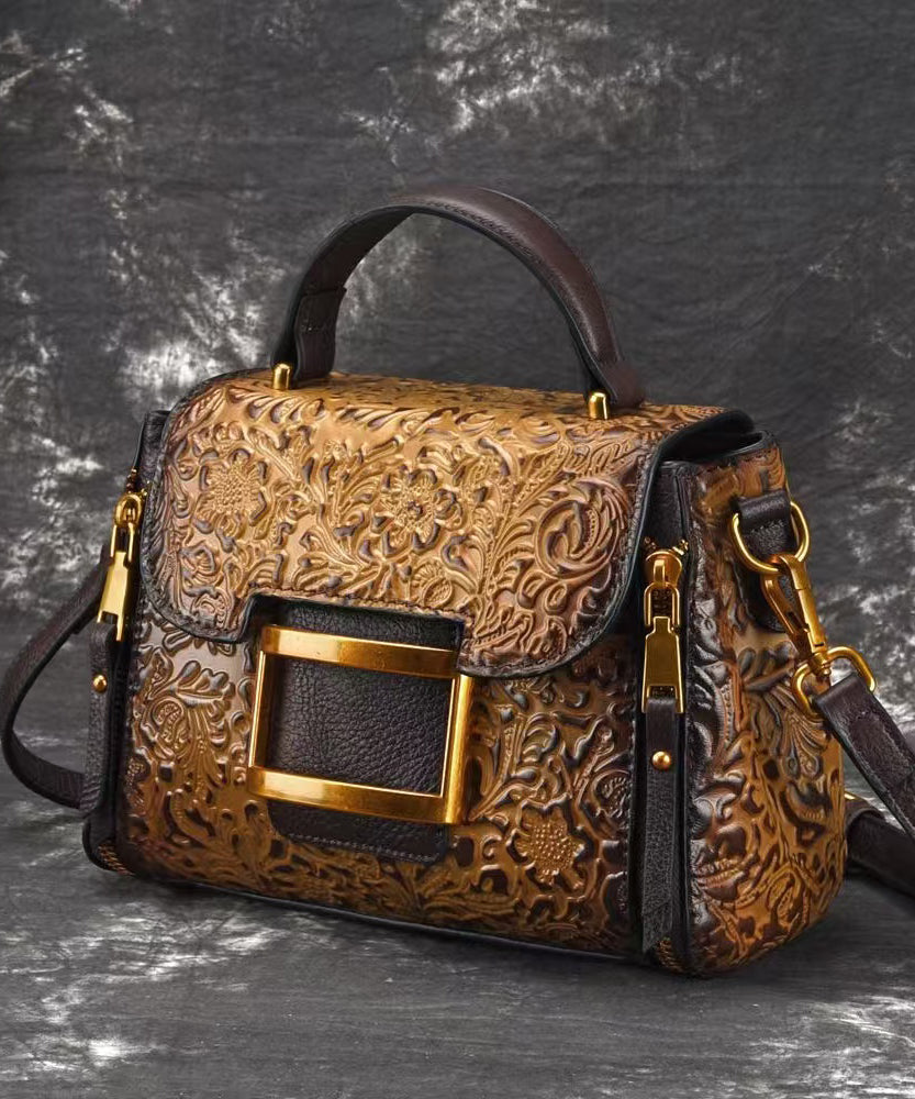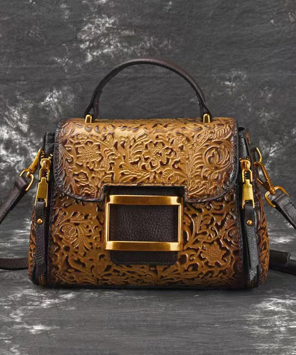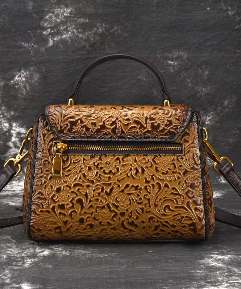 Retro Yellow Embossed Solid Durable Calf Leather Messenger Bag