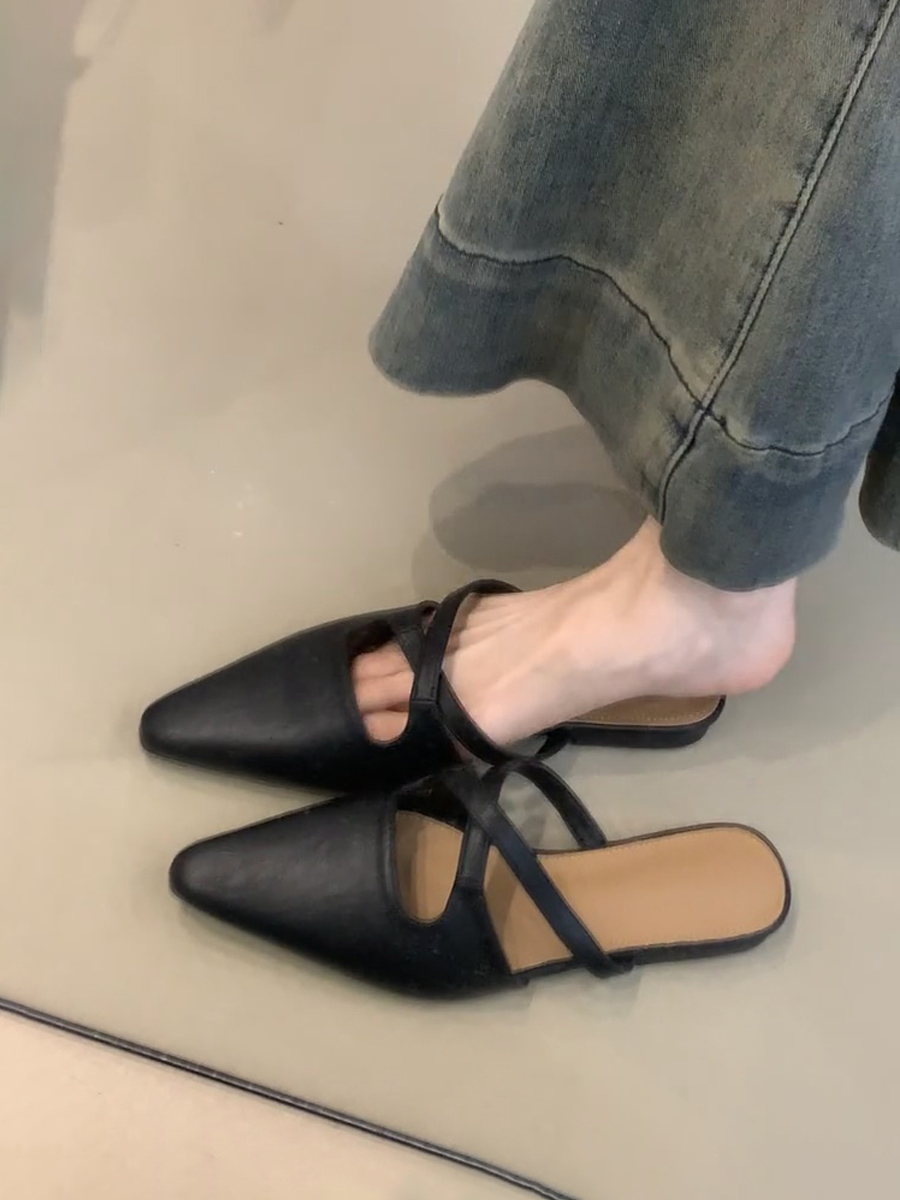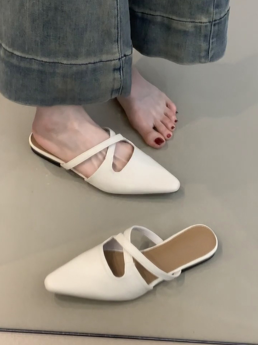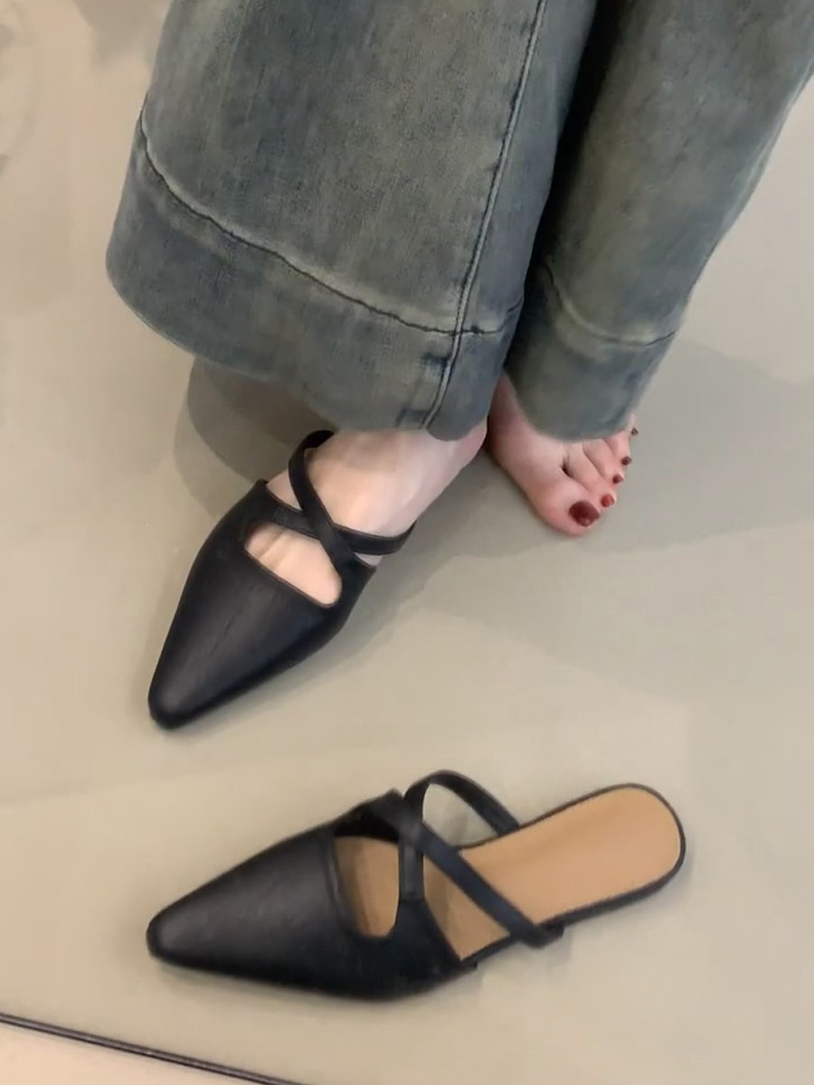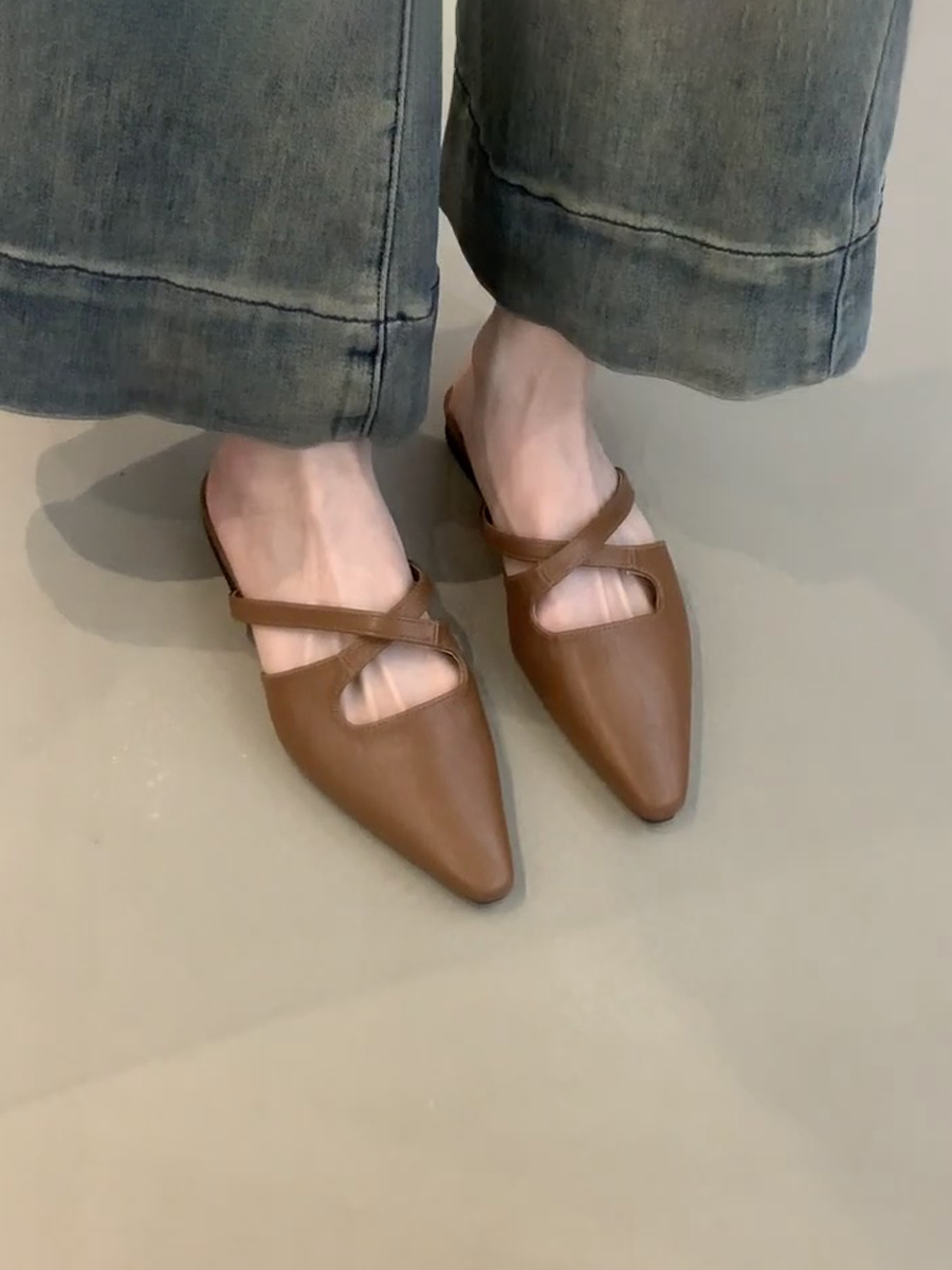 Sheepskin Cross Strap Open Toe Half Slippers Flat Slip on Co – Outfit Ideas
