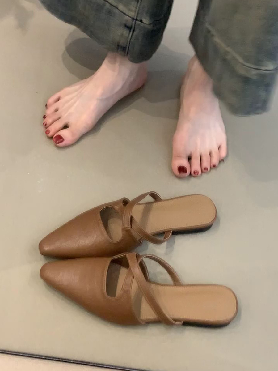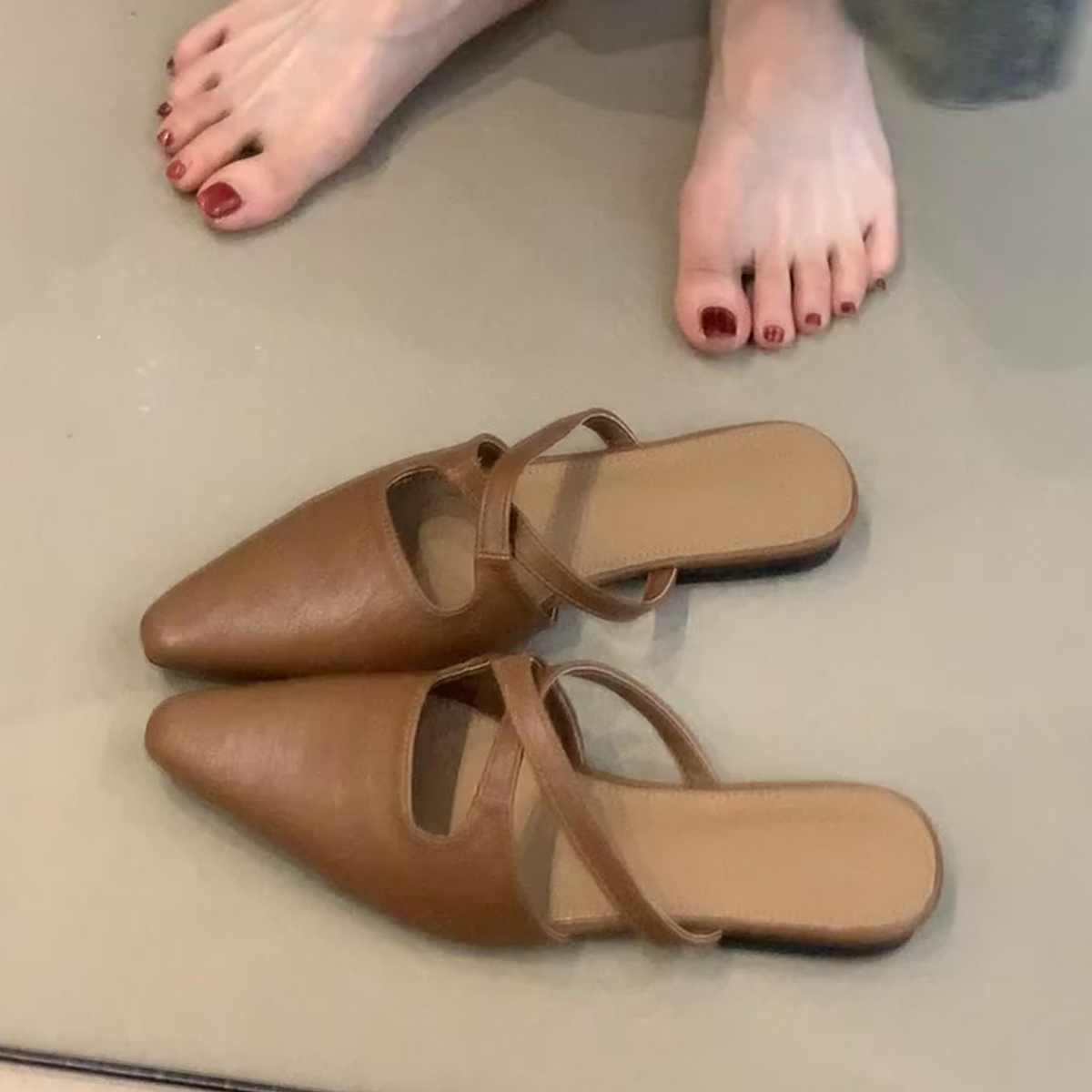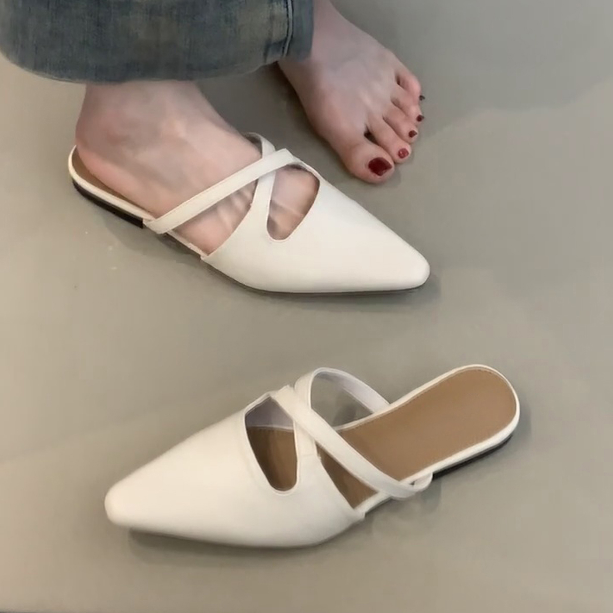 Sheepskin Cross Strap Open Toe Half Slippers Flat Slip on Co – Outfit Ideas