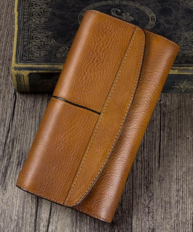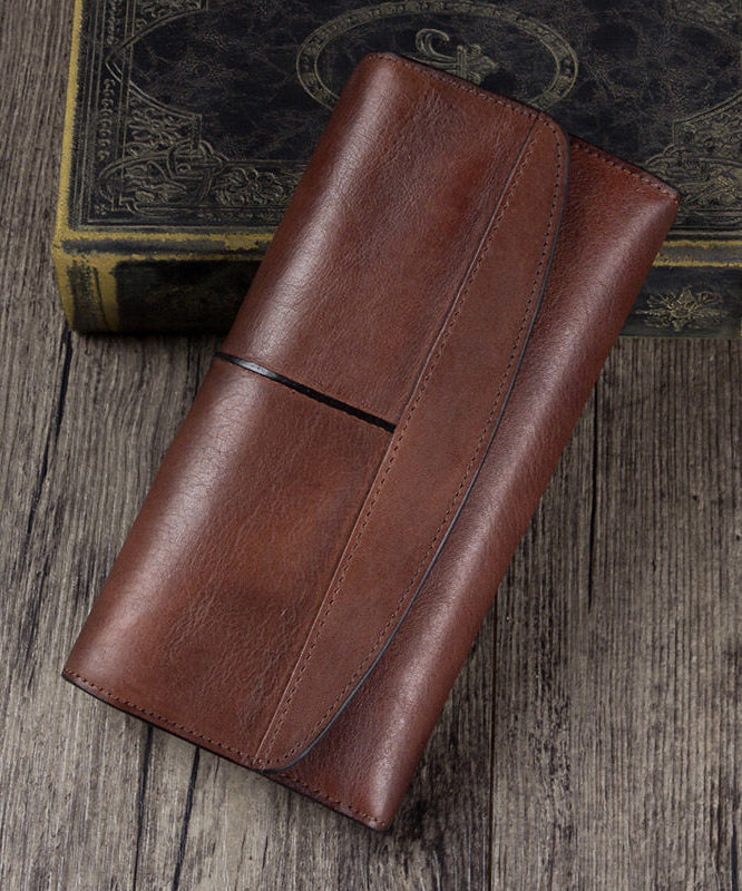 Simple Brown Durable Genuine Calf Leather Wallet Purse