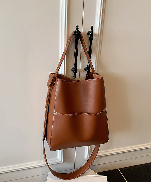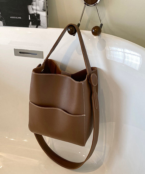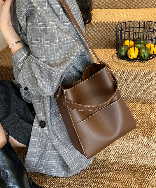 Simple Coffee Large Capacity Faux Leather Versatile Bucket Bag
