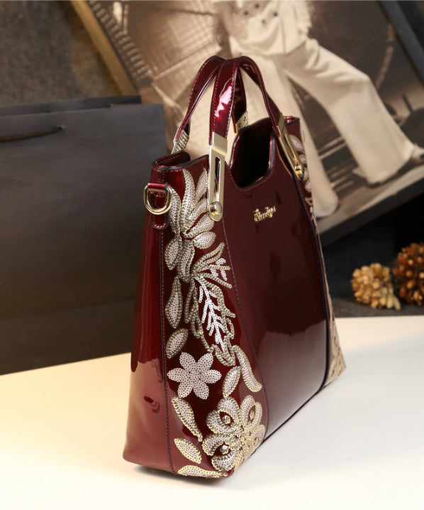 Simple Mulberry Sequins Embroidered Large Capacity Tote Handbag