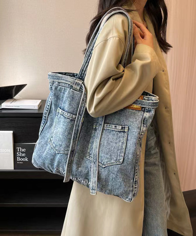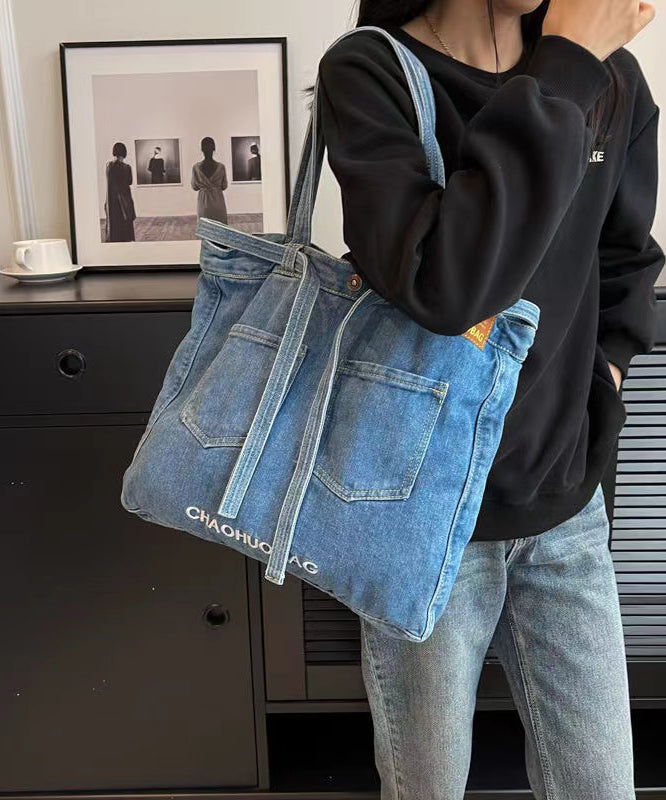 Simple Navy Letter Denim Durable Satchel Bag Handbag